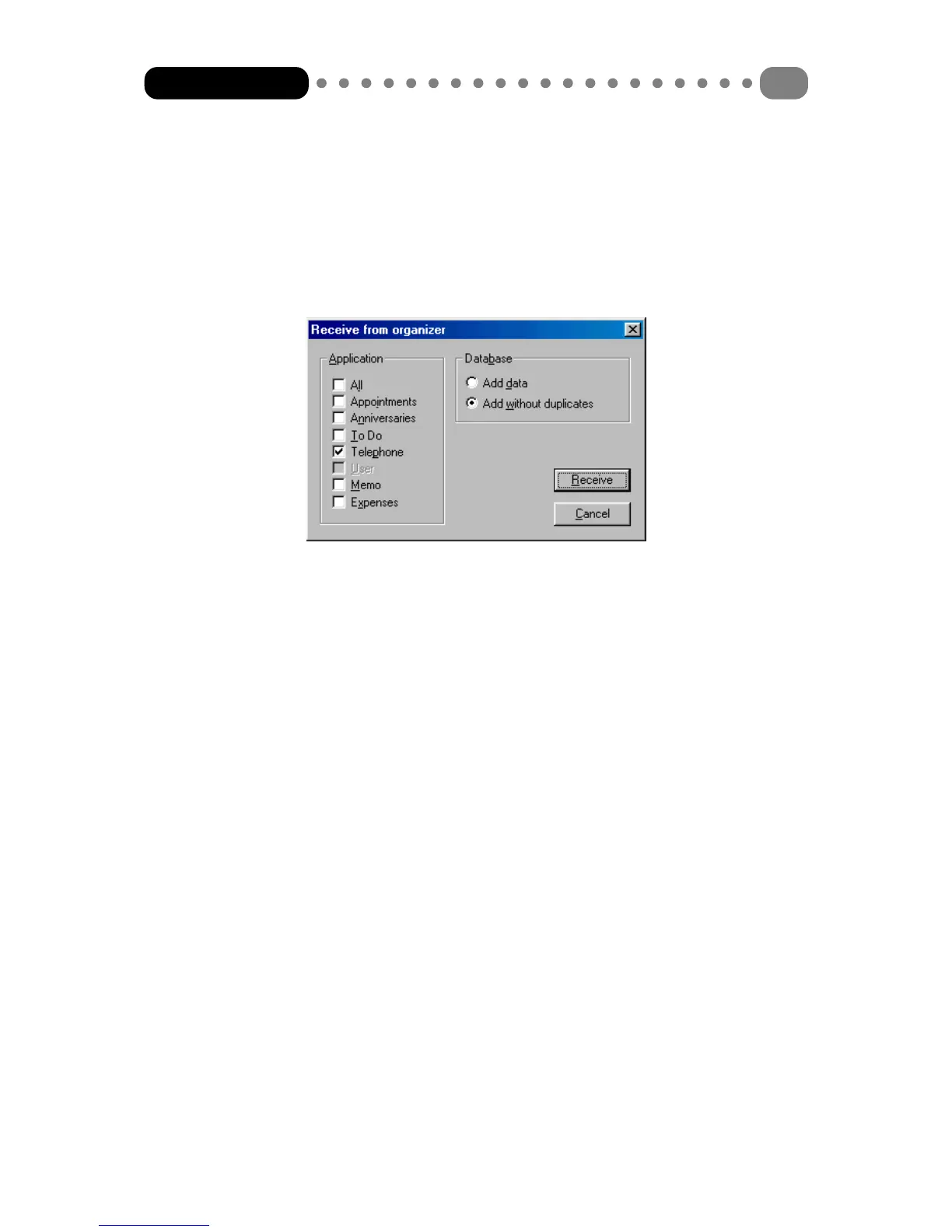 option ‘Synchronise’ in the ‘Link’ menu. Organizer Link 4 will start transferring the data