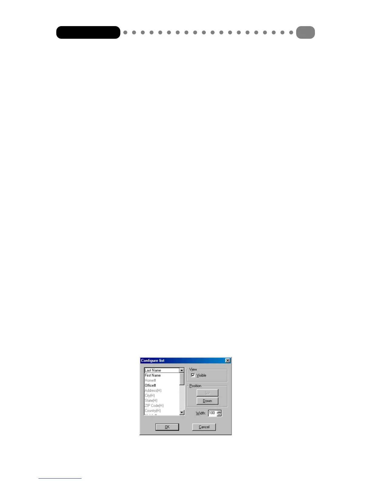at what width. To do this click in the list field with the right mouse button. You then see a