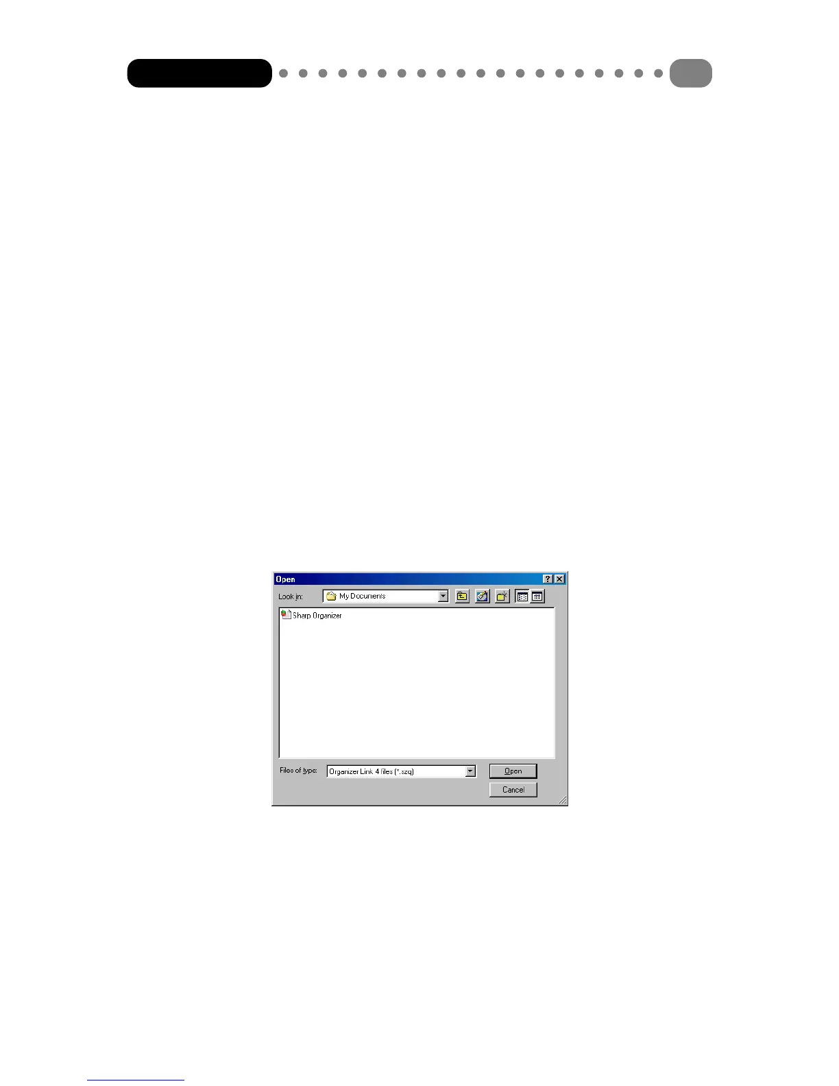 For this reason a new file must be created for every new SHARP Organizer and every new user of