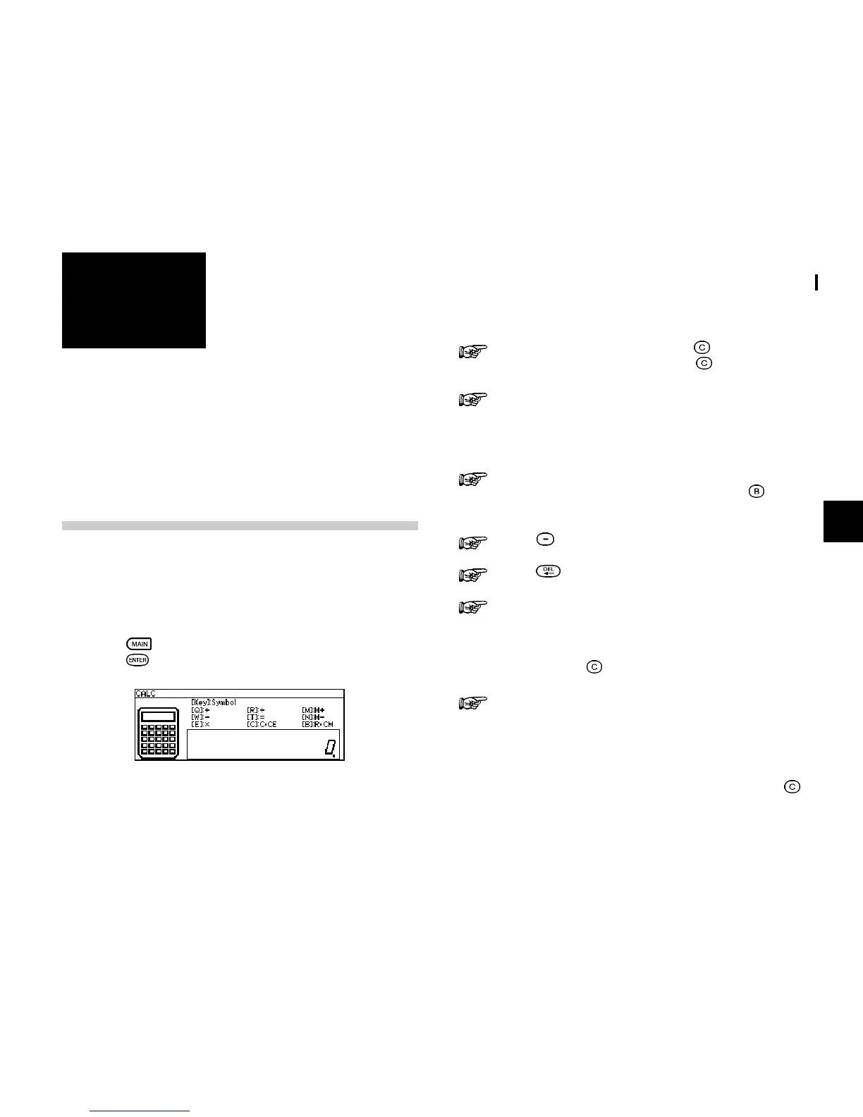 calculations on figures entered using the number keys. The