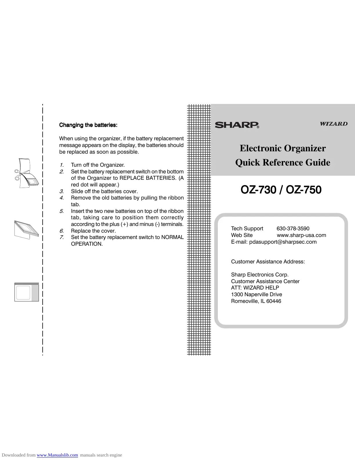 of the Organizer to REPLACE BATTERIES. (A