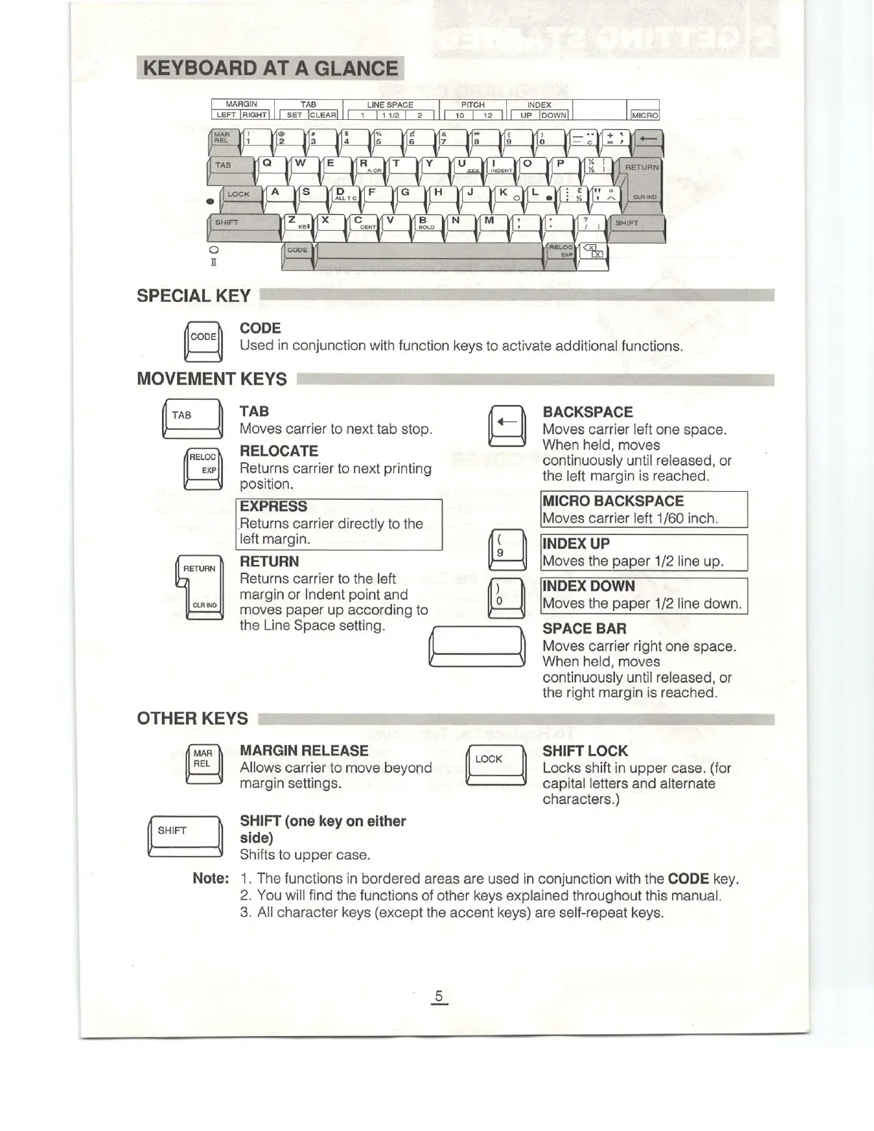 Sharp PA-3000 - Special Key; Movement Keys; Other Keys
