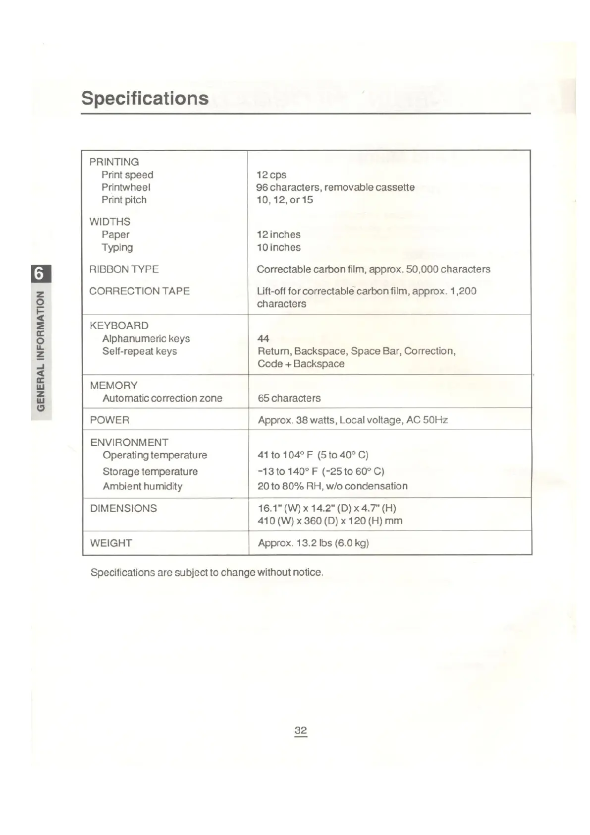 Specifications