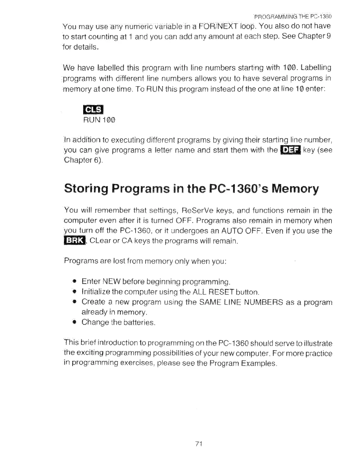 Sharp PC-1360 - Storing Programs in Memory; Shortcuts; DEF Key and Labelled Programs