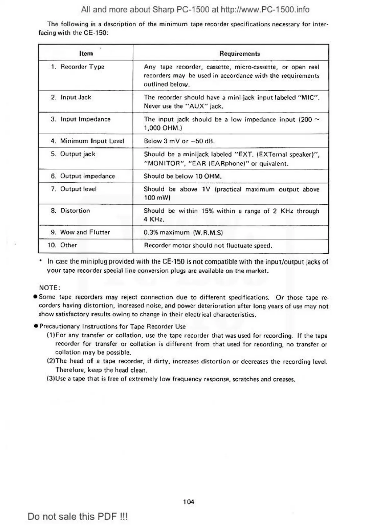 the minimum tape recorder specifications nece