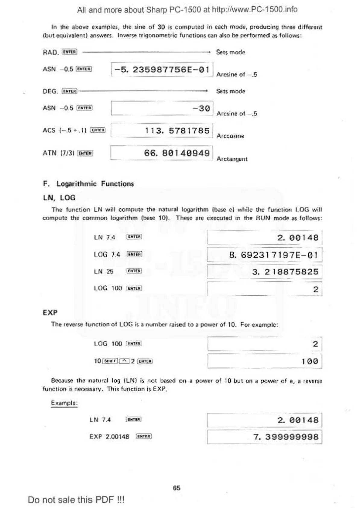 Sharp PC-1500 - Logar Ithmic Functions