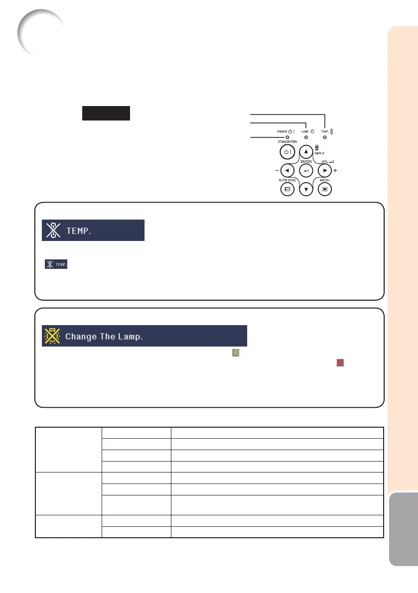 ■ If a problem occurs, either the temperature warning indicator or the lamp indicator will