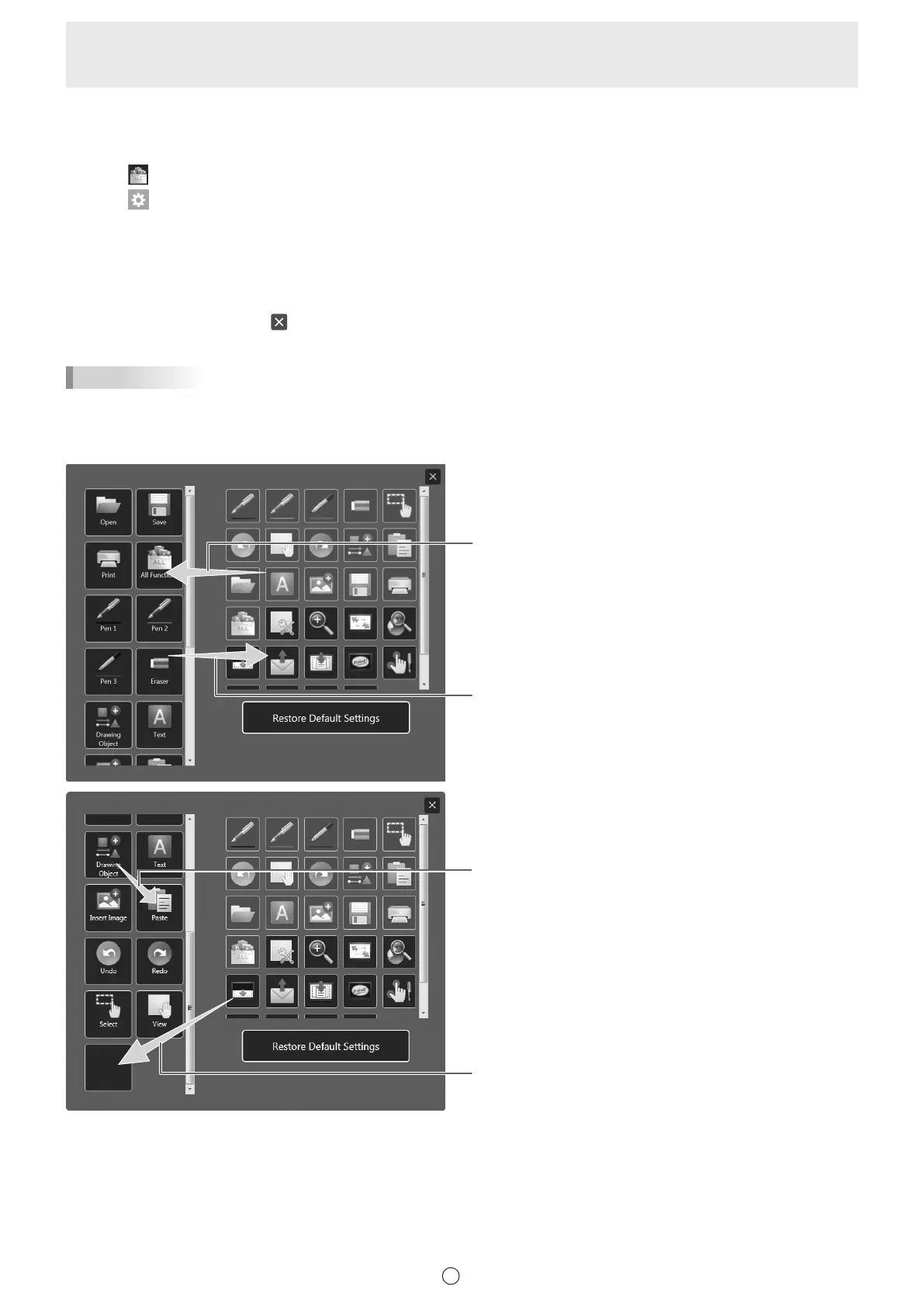 Cannot remove “Eraser”, “Select” and “All Functions” icon from the menu.