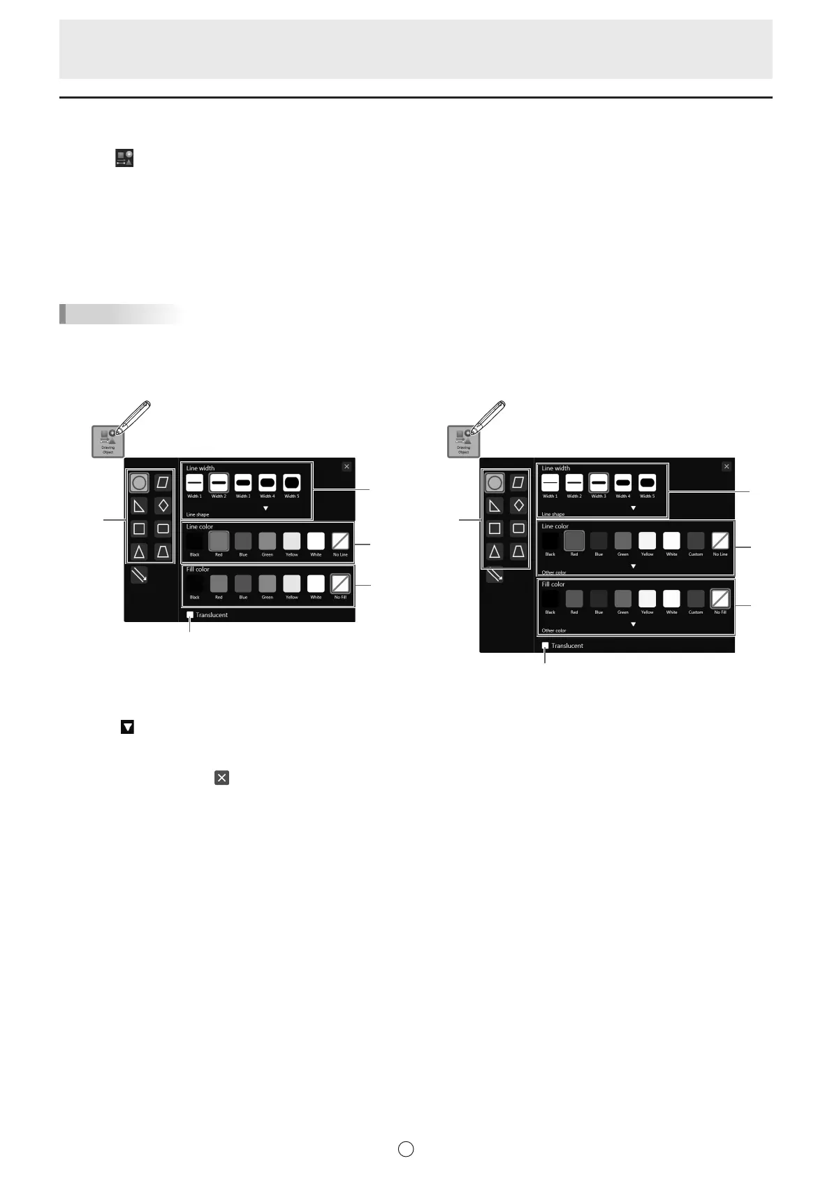 When Color Universal Design (page 56) is “Enable”, the line colors and widths that can be set change to colors and widths