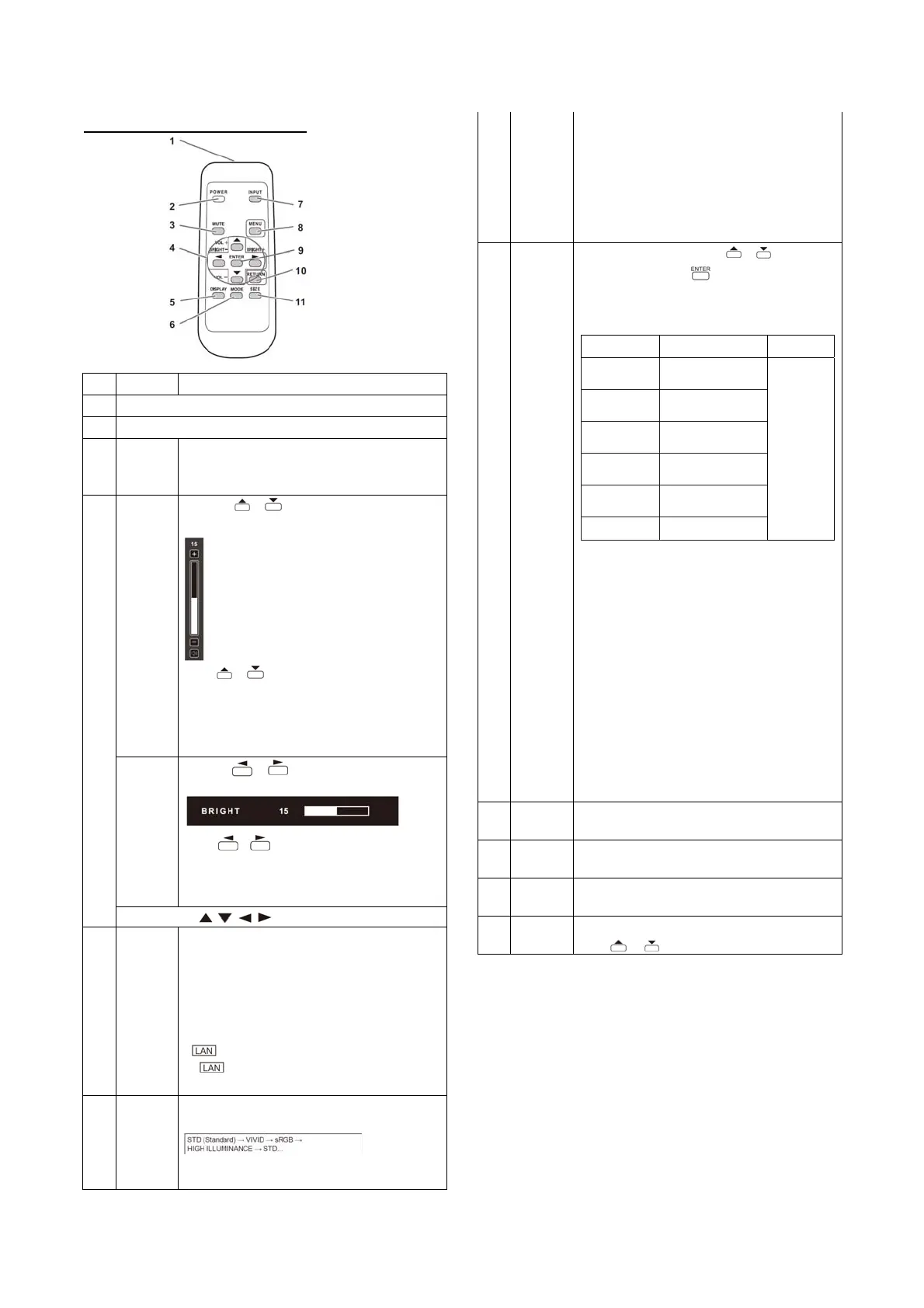 Pressing or displays the BRIGHT menu