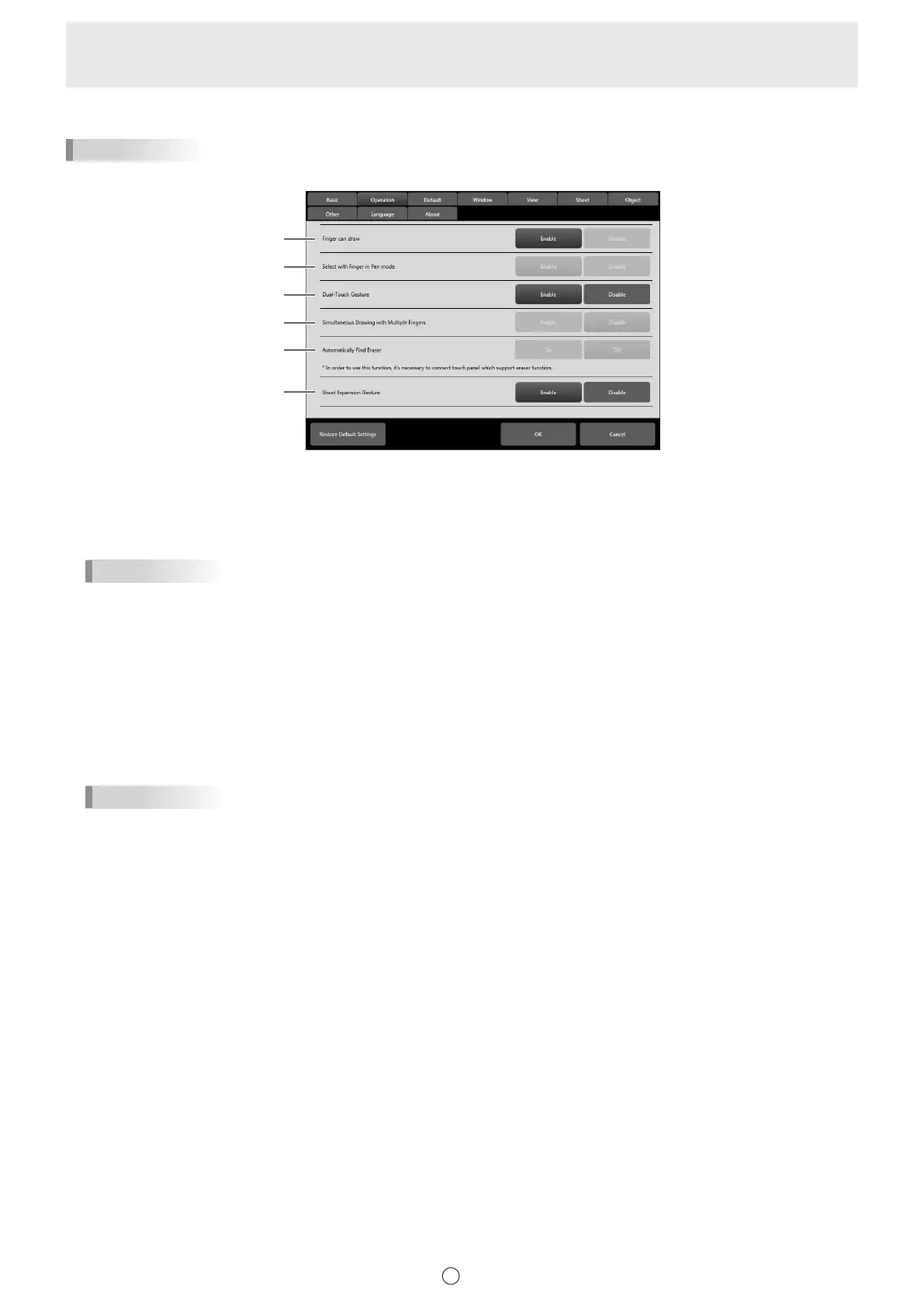 When using an active pen, this can be set when “Finger can draw” is set to “Disable”. When set to “Enable”, you can touch