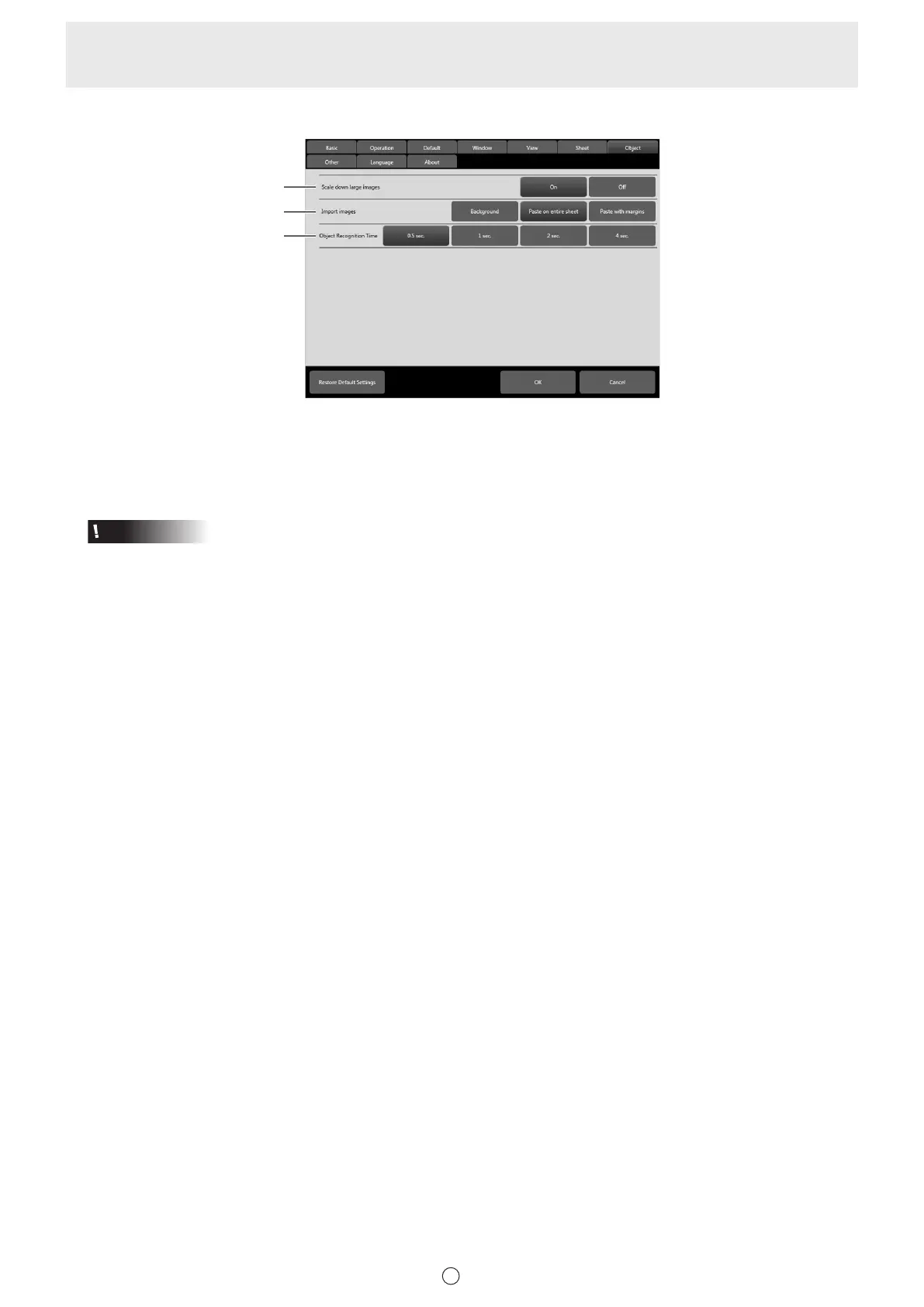 Set the method used to import images. (Page 20)