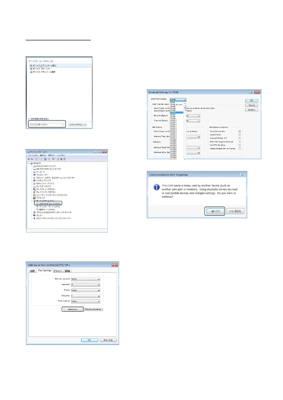 Choose the COM number which is not displayed in "Port (COM