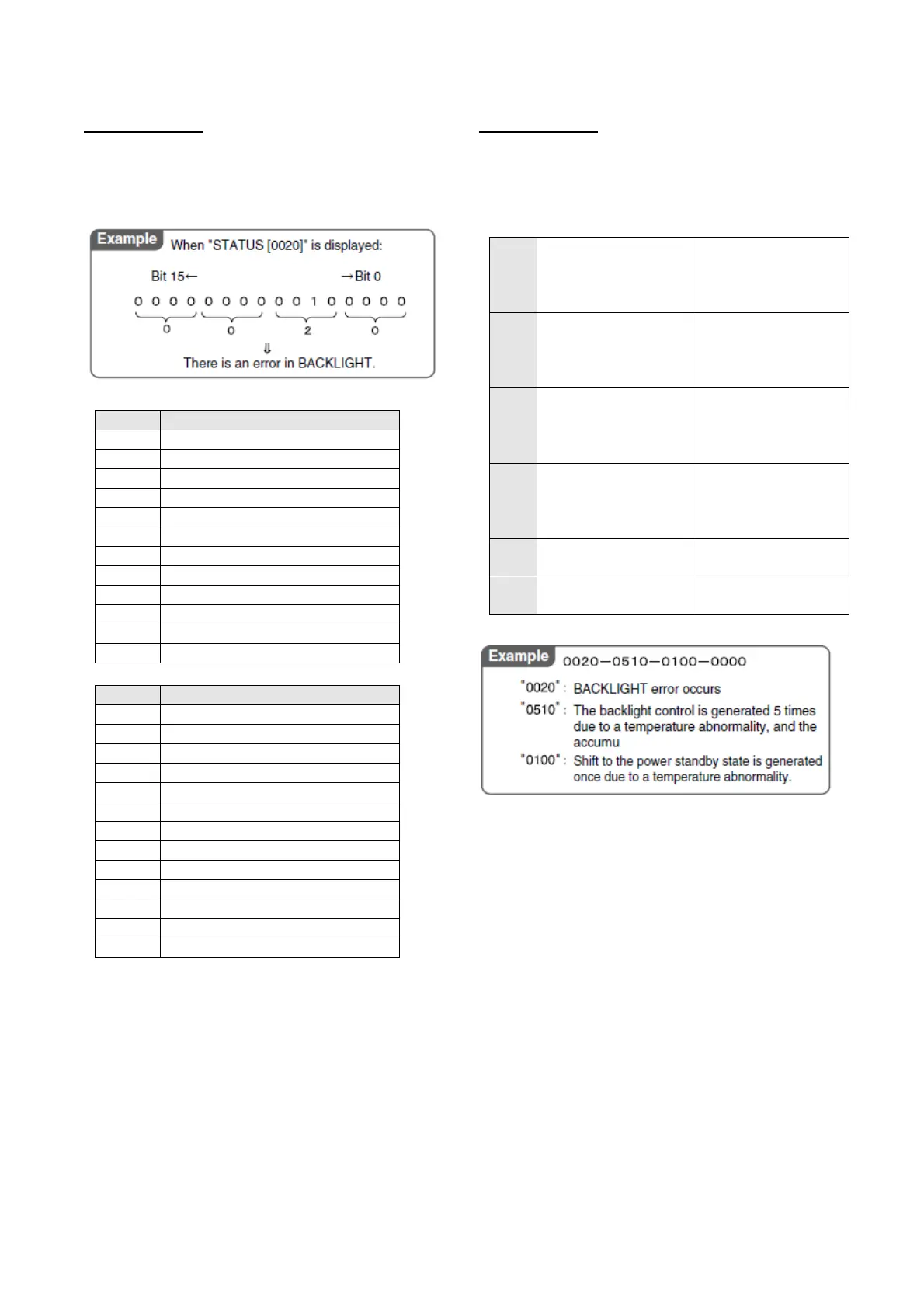 1) When an error occurs, four-digit figures are displayed after the