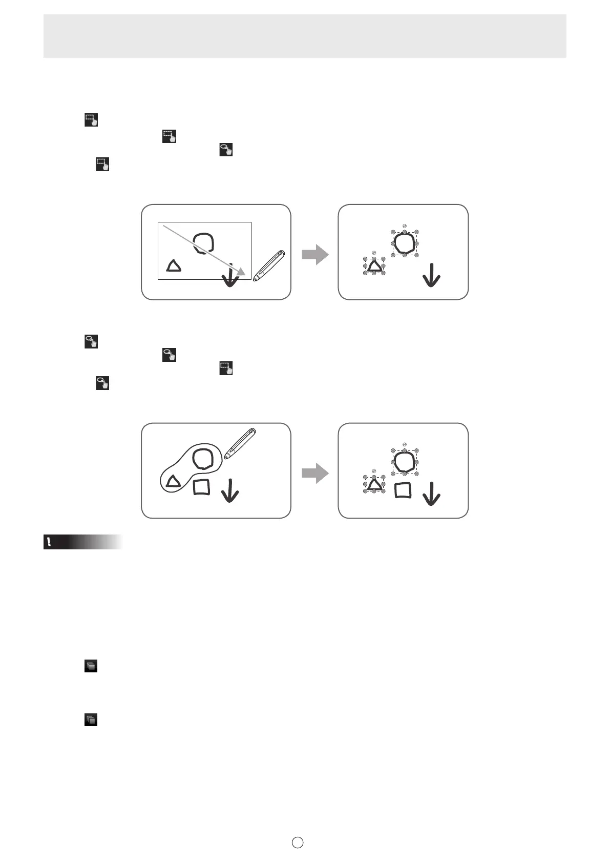 With 3 button pens/pointer pens/passive pens 2, an object cannot be selected simultaneously for multiple pens. Only 1 pen