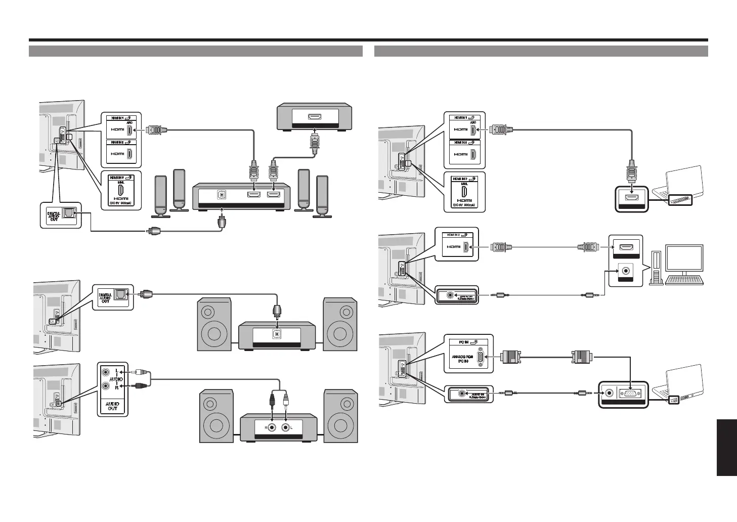 bağladıktan sonra, AUDIO IN uçbirimine bir Ø 3.5 mm stereo mini jack kablosu bağlayın ve "Ses Seçimi"