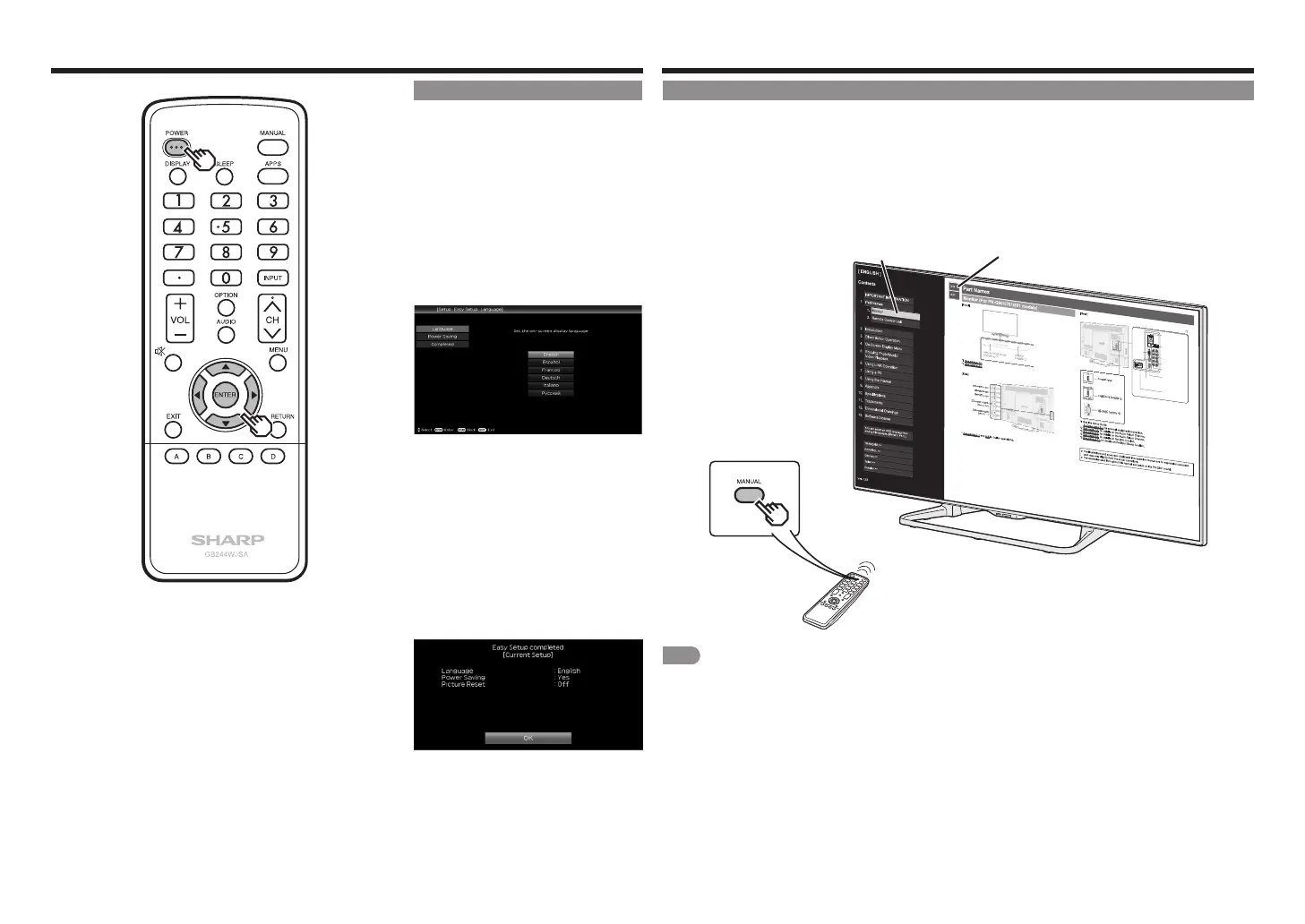 information, press MANUAL while watching the Monitor and then select the applicable item from the manual