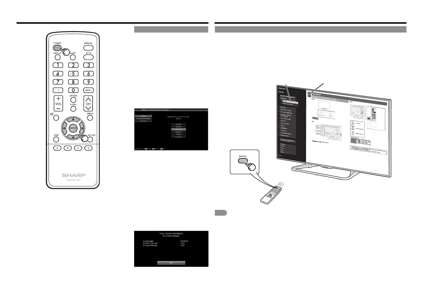 informations sur le dépannage, appuyez sur MANUEL tout en regardant l’écran, puis sélectionnez l’élément