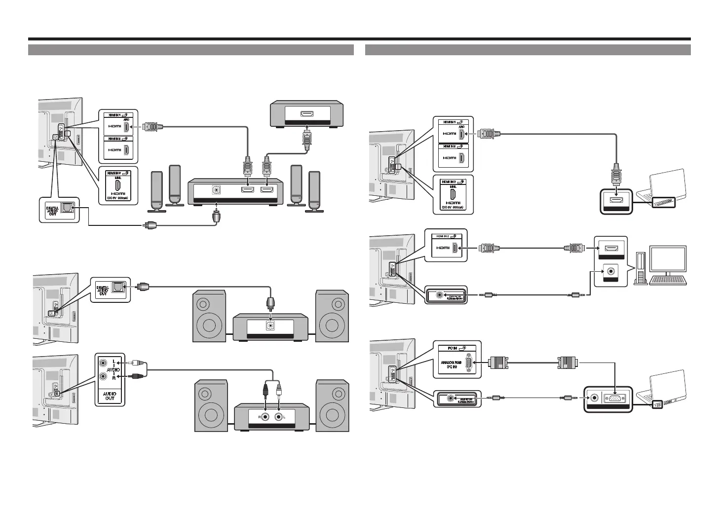 • Quando si utilizza un cavo RGB analogico, è necessario far uscire il segnale audio dell'ingresso AUDIO IN usando la