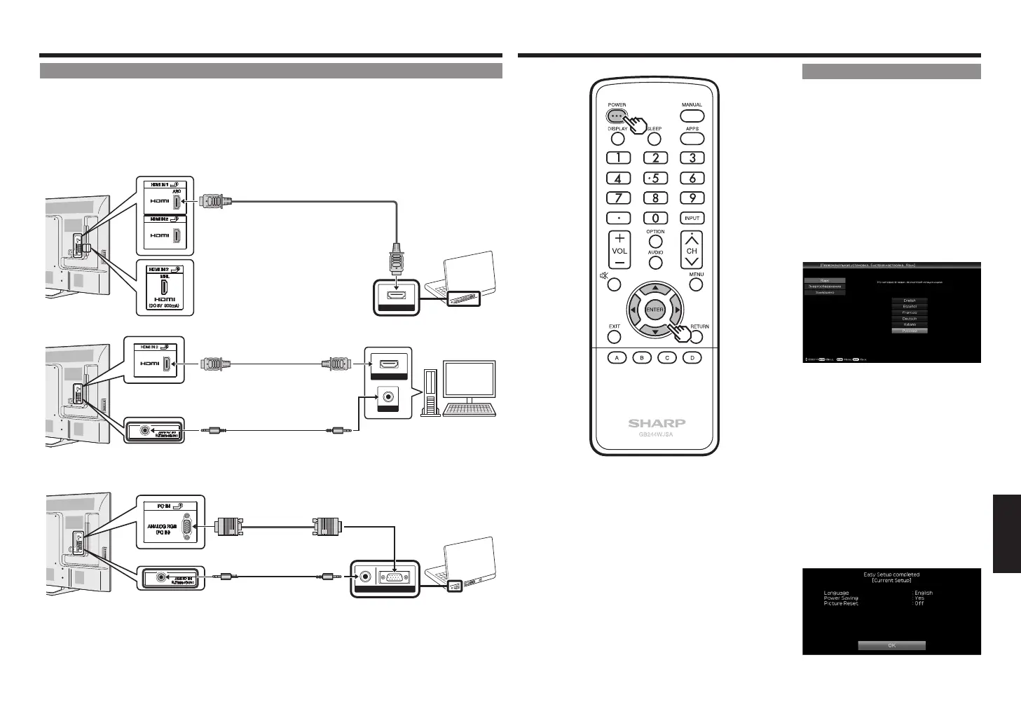 установку "HDMI+аналоговый". (Обратитесь к встроенному руководству по эксплуатации.)