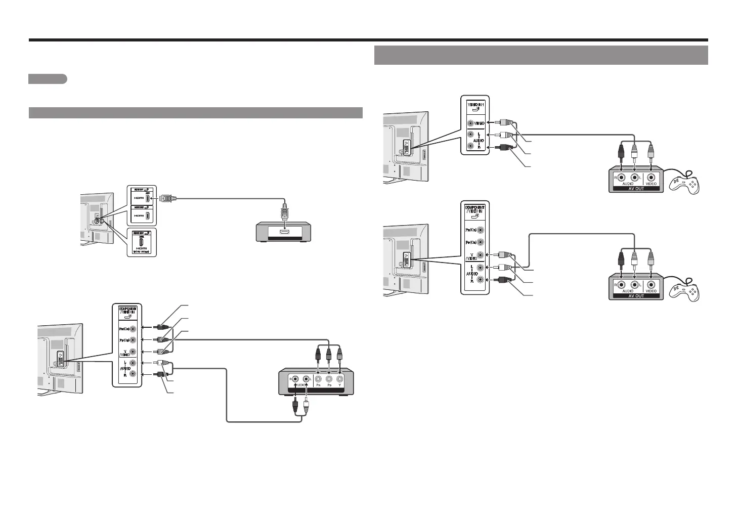 • Lisez soigneusement le manuel de fonctionnement pertinent (lecteur Blu-ray, etc.) avant de faire des connexions.