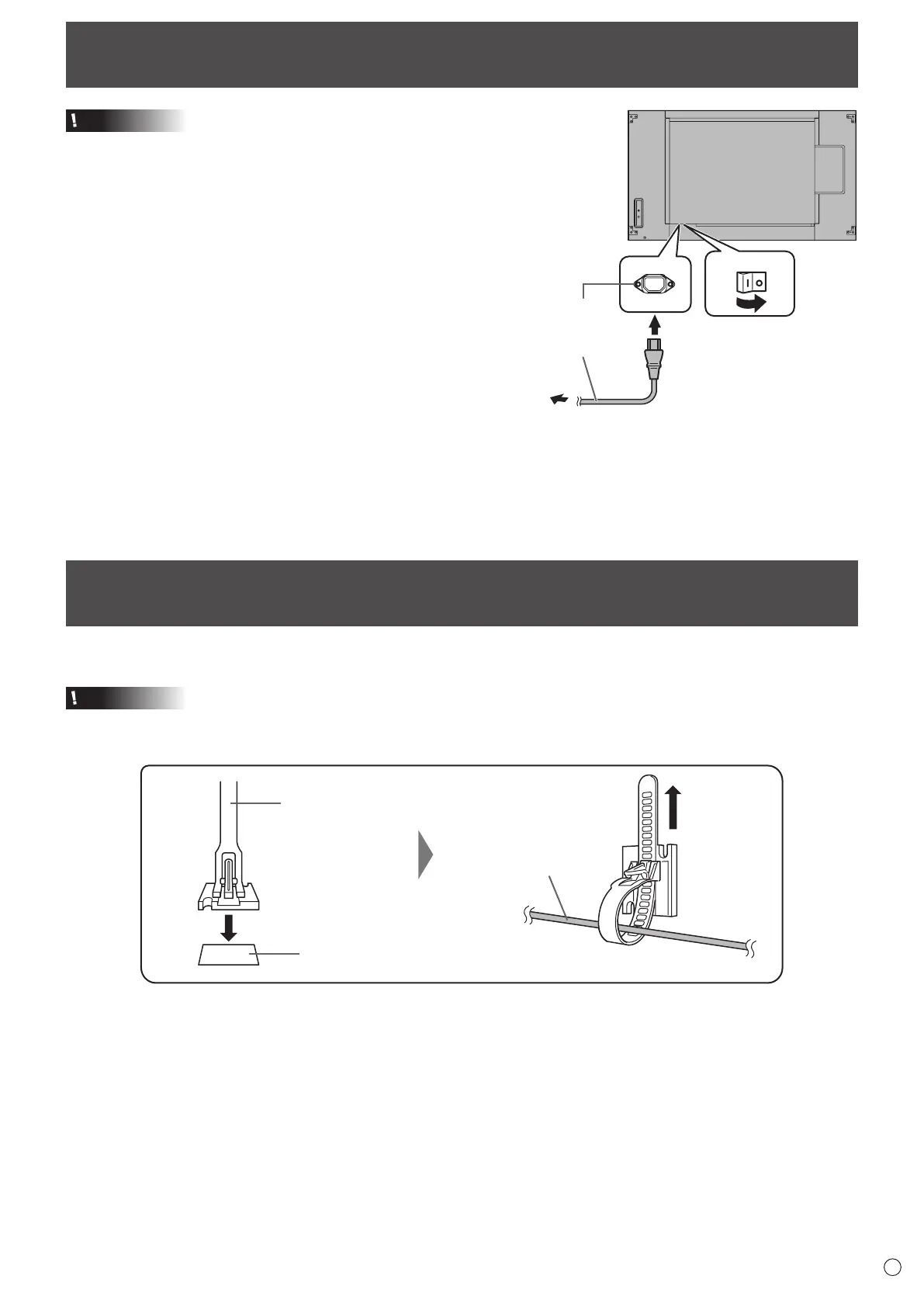 The supplied cable clamps (afxing type) can be used to clamp the power code and cables connected to the back of the monitor.