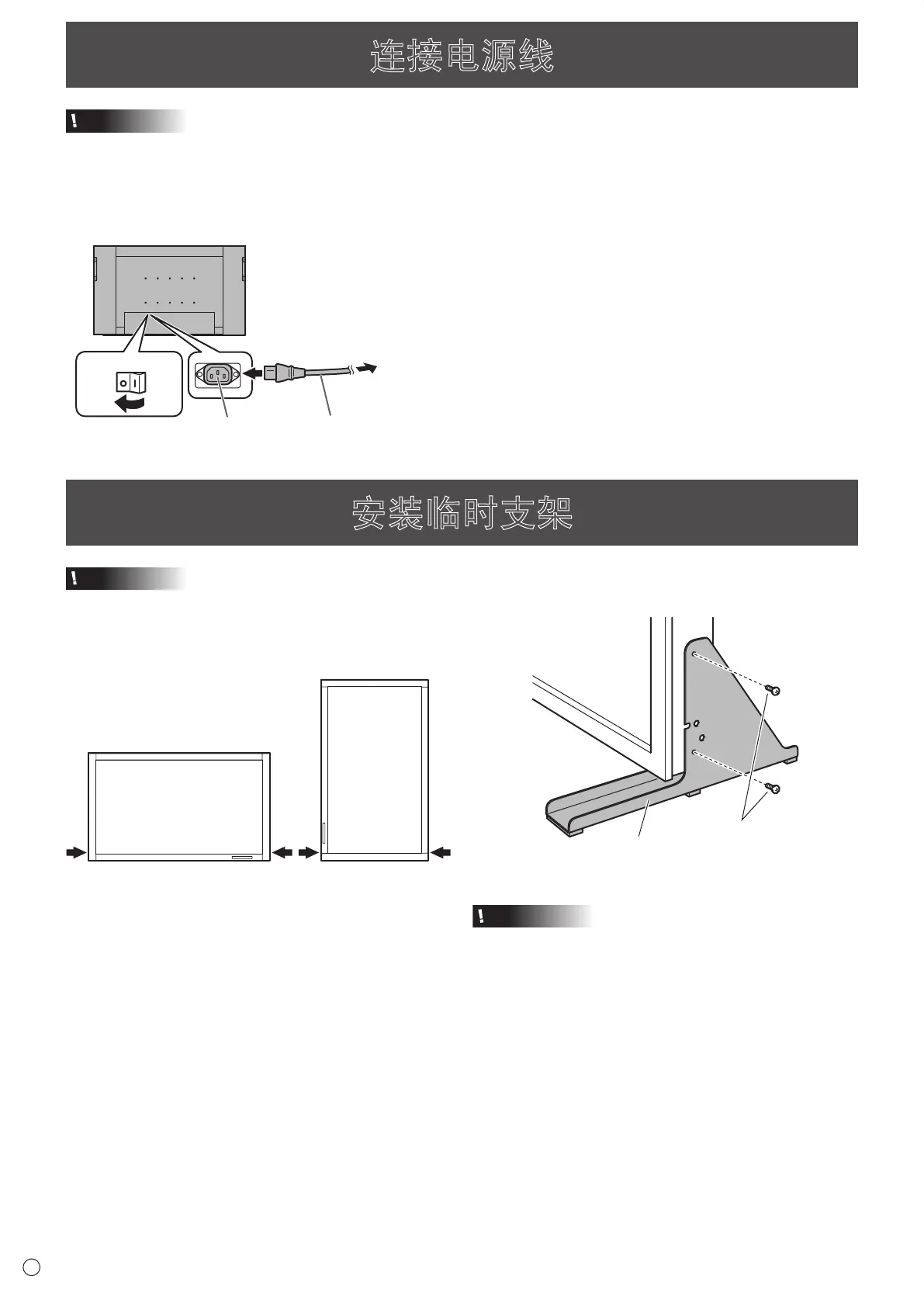 请注意此支架只能供显示器正确安装前临时使用。