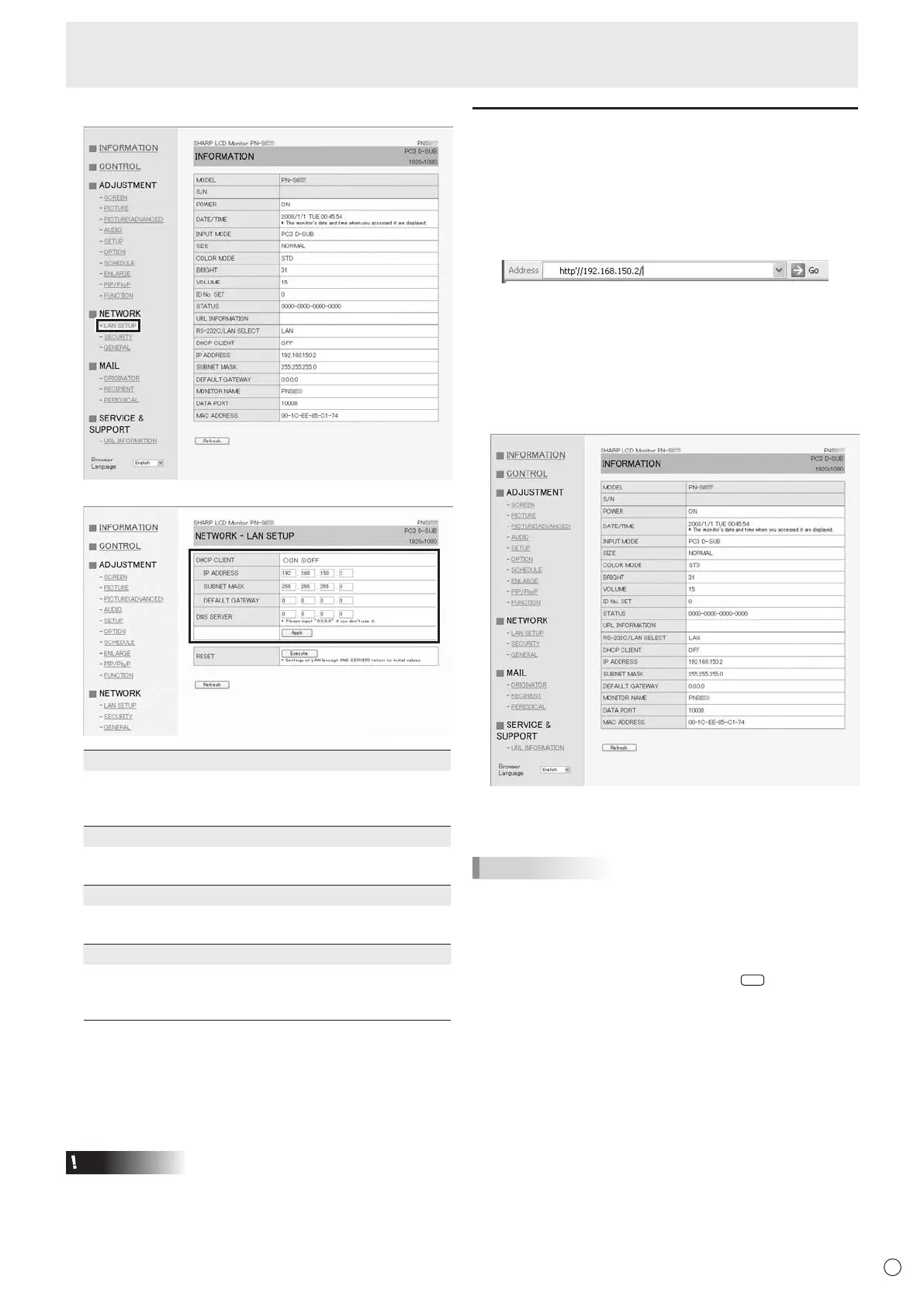 If the DHCP CLIENT is set to “OFF”, specify an IP