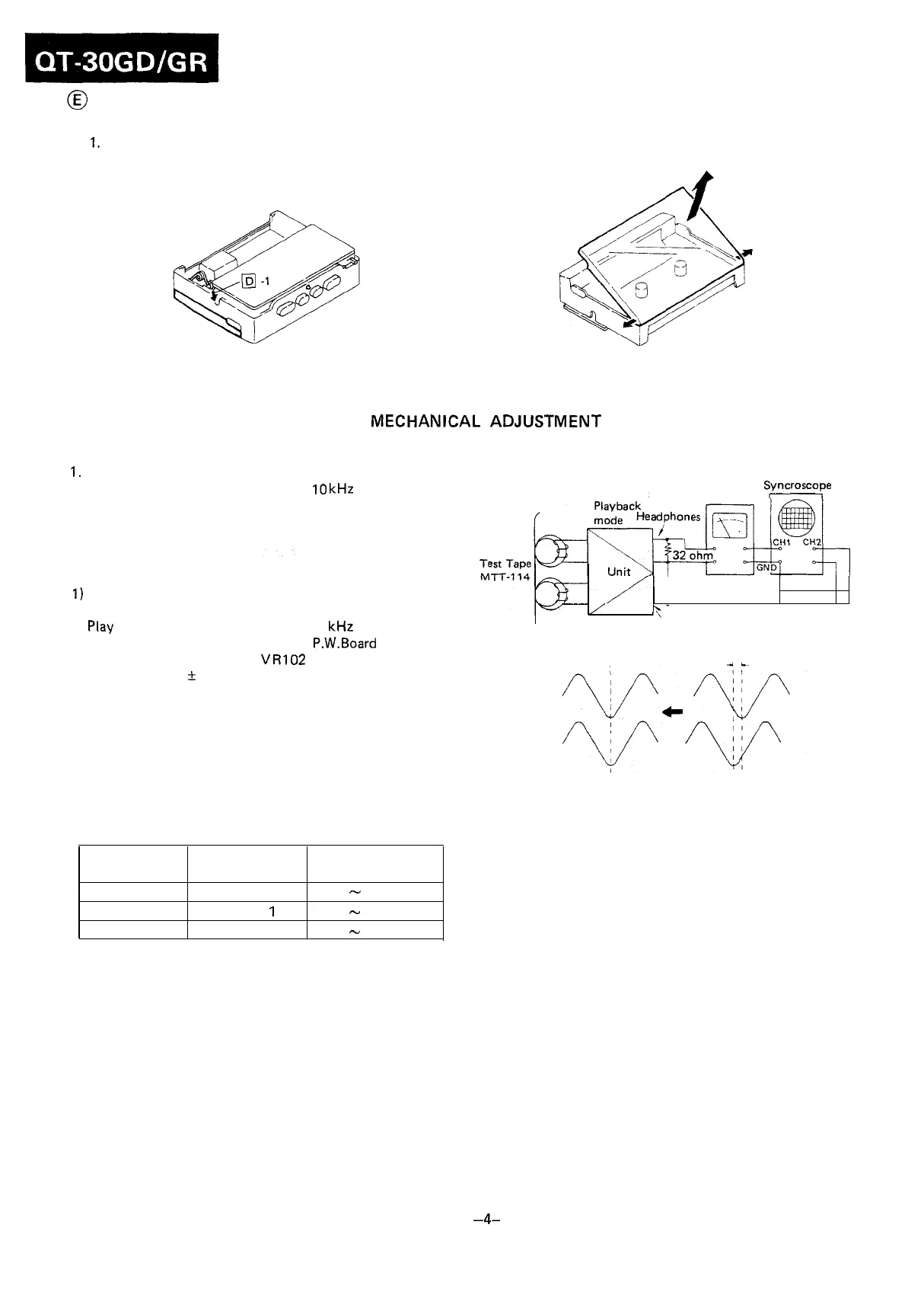 2) Play a test tape (TEAC, MTT-111, 3