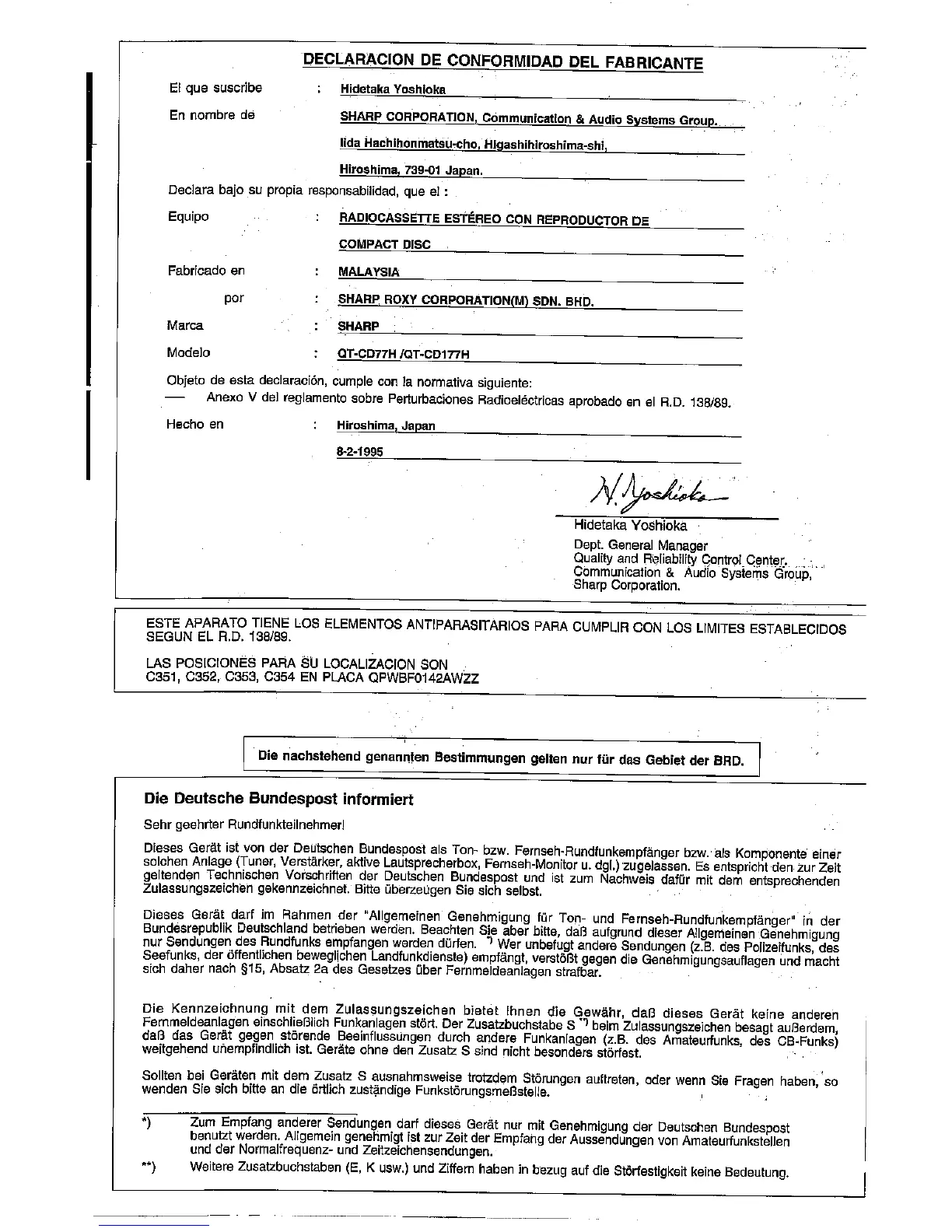 Sharp QT-CD177H - Page 2