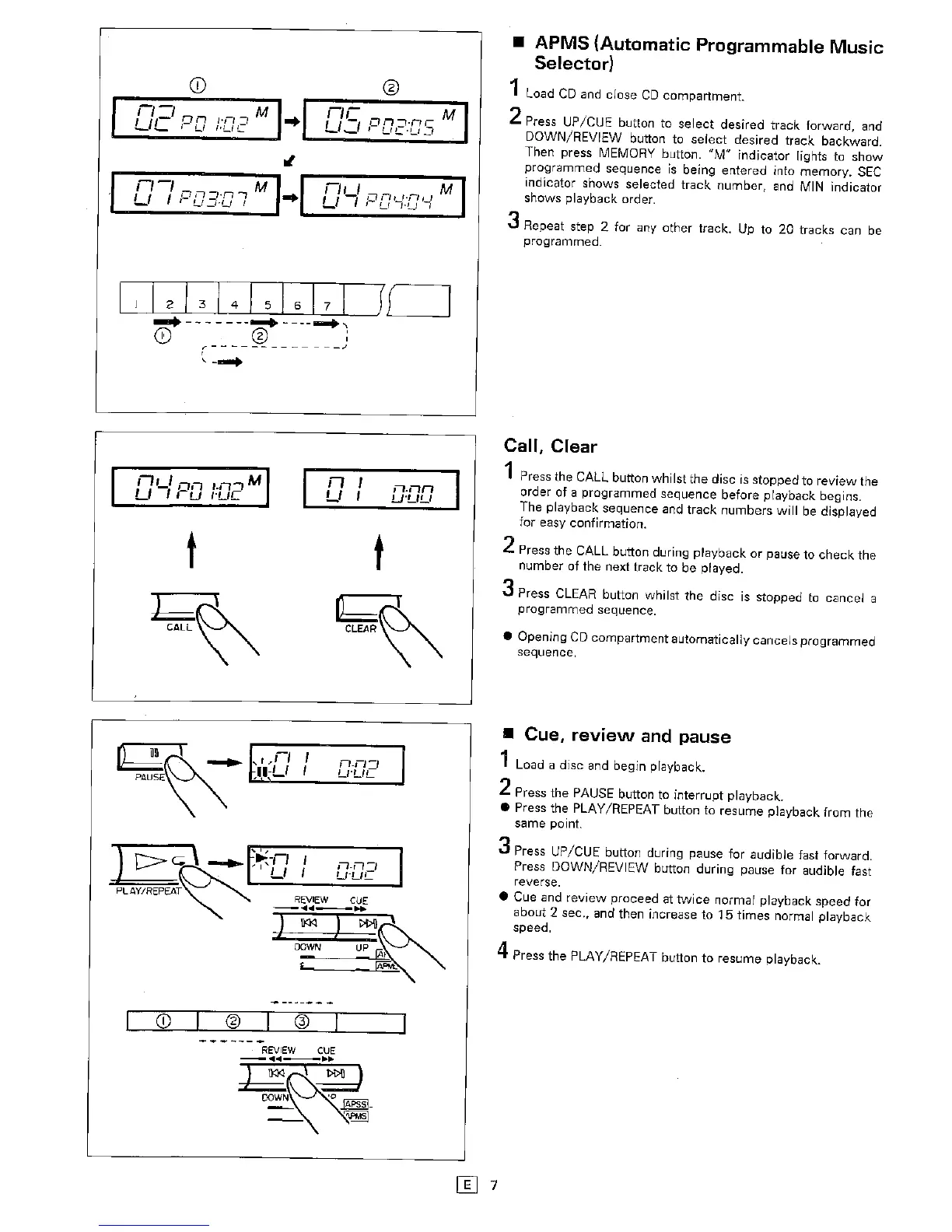 Sharp QT-CD20H - Advanced CD Functions; Programming Tracks with APMS; Reviewing and Clearing Programs; Pausing and Resuming Playback