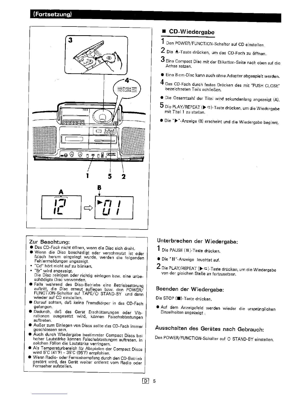 Sharp QT-CD5H - Advanced CD Functions; APSS (Auto Program Search System); Cue and Review