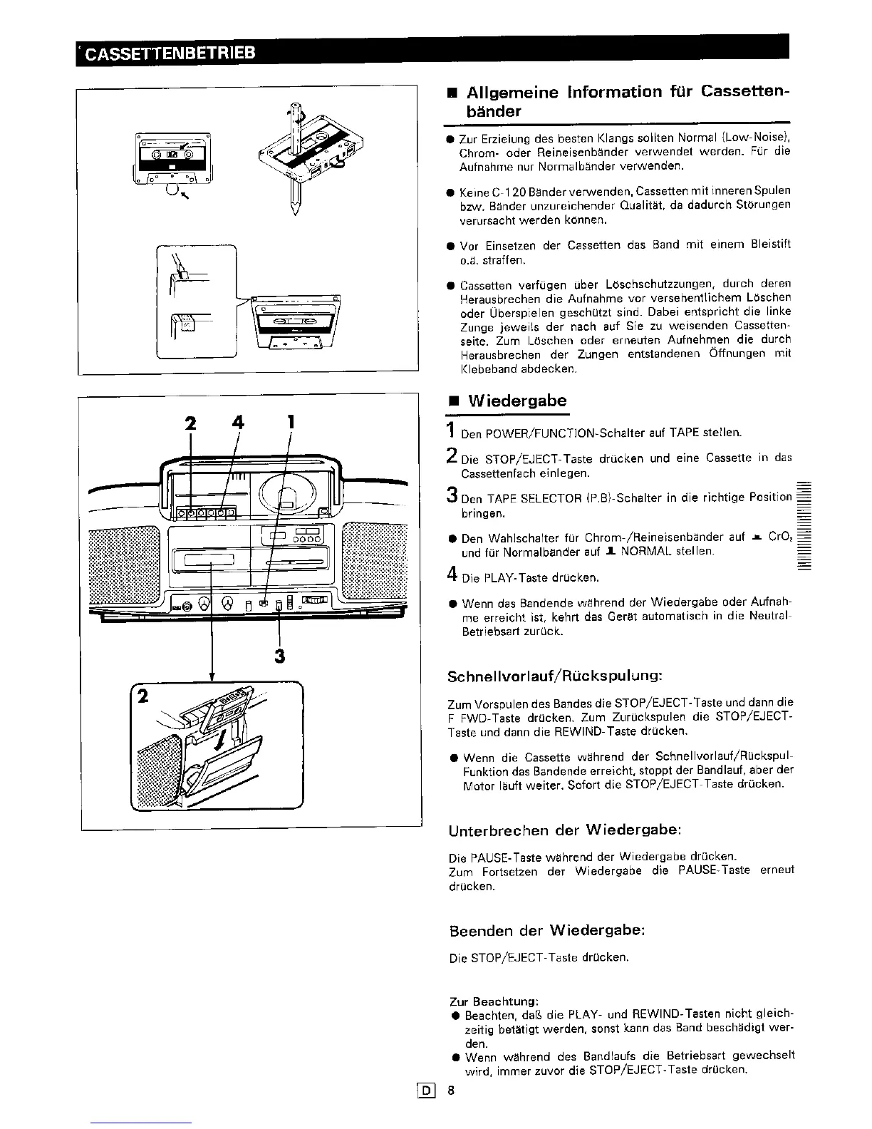 Sharp QT-CD5H - Recording Functions; Recording from Radio; Recording from CD Player; Erasing Recorded Tapes