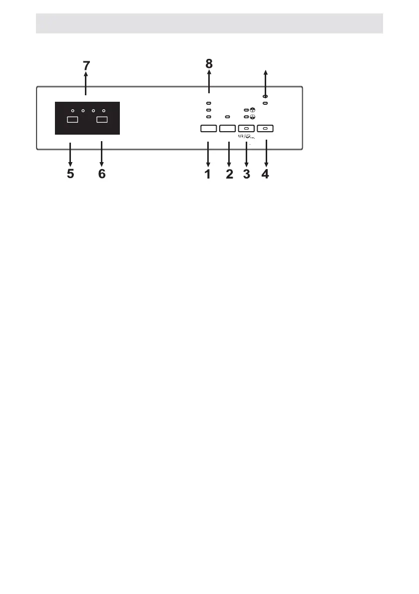 NOTE: When rinse aid is not enough, rinse aid lack warning indicator (9) turns on and