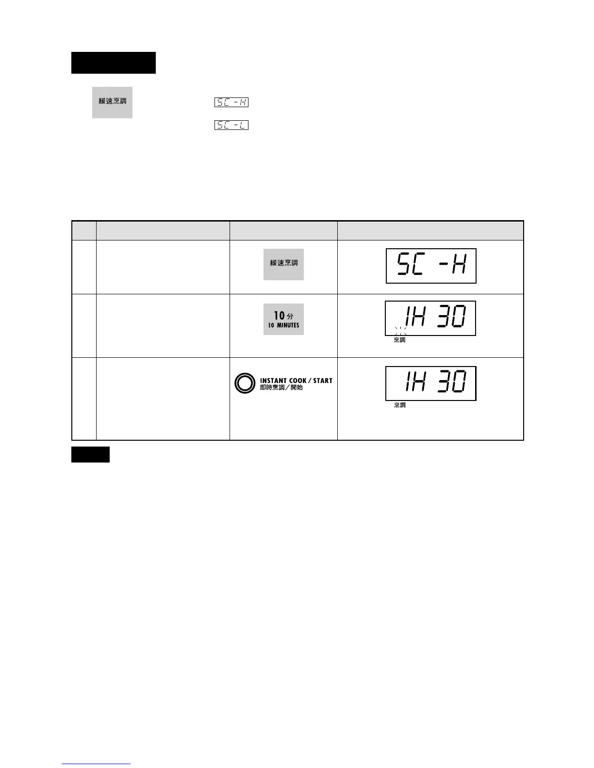 braising, boiling soup or Chinese desserts of liquid type. The SLOW COOK setting provides two choices: