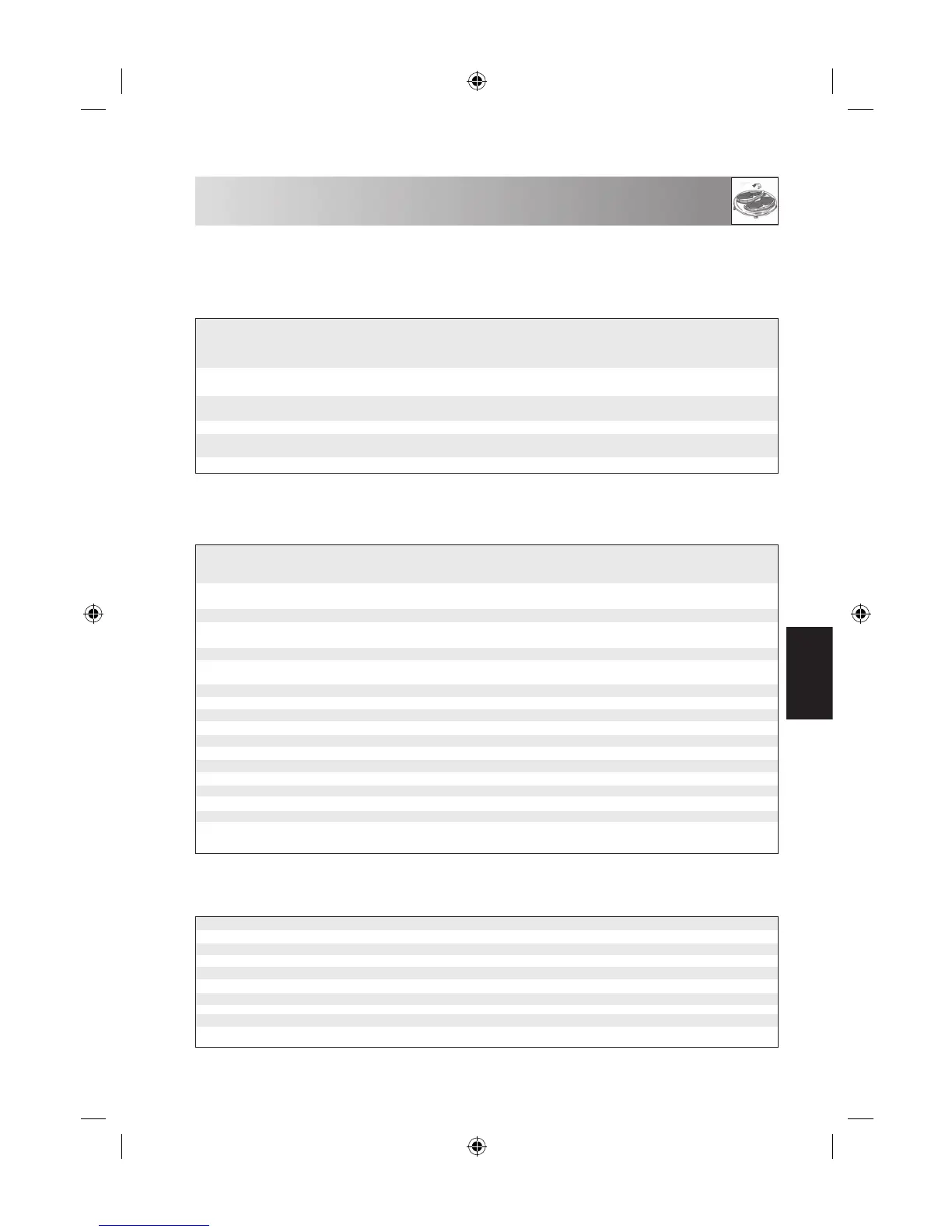 TABELLA PER LO SCONGELAMENTO E LA COTTURA DI CIBI SURGELATI