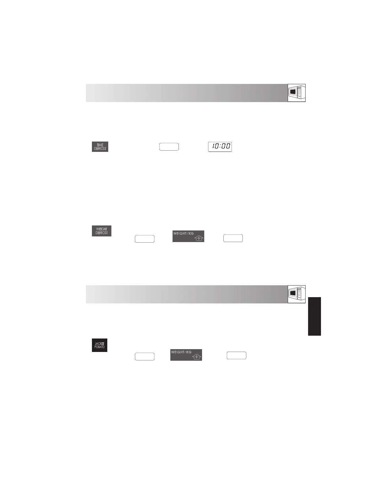 Example : To defrost a meat joint weighing 1.2kg using WEIGHT DEFROST.