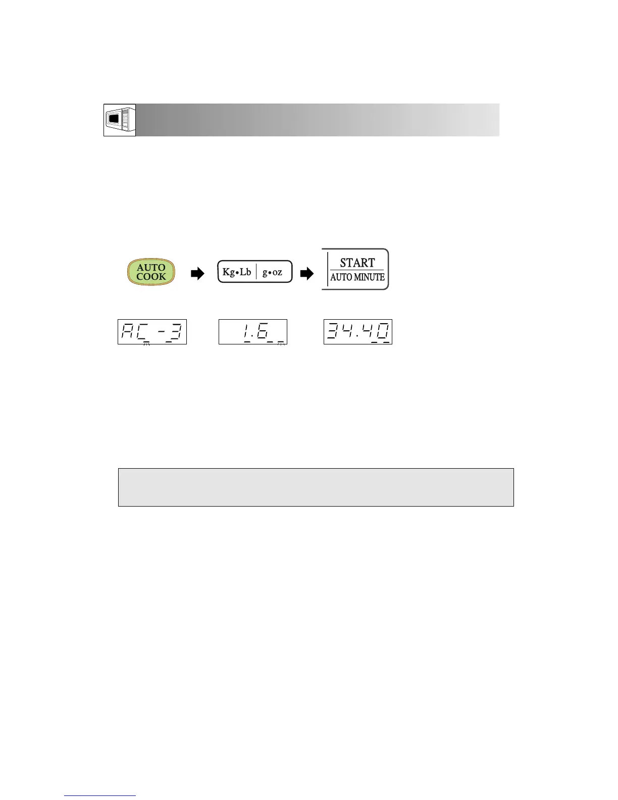 page 13). To operate the Auto Cook/Auto Defrost function, follow the example given below.