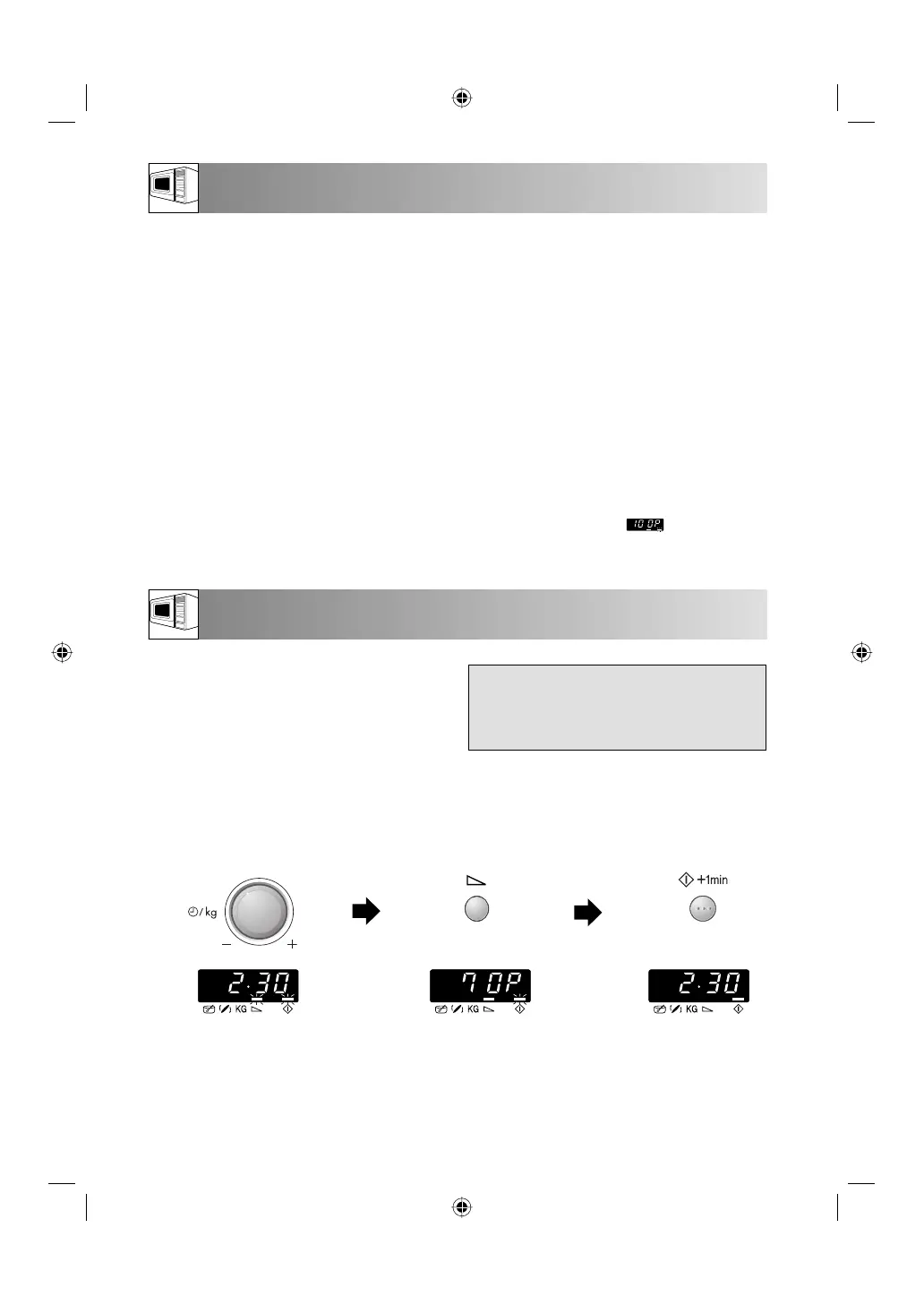 Il conteggio del tempo di cottura riprende quando si richiude lo sportello e si preme il pulsante INIZIO/+1min.