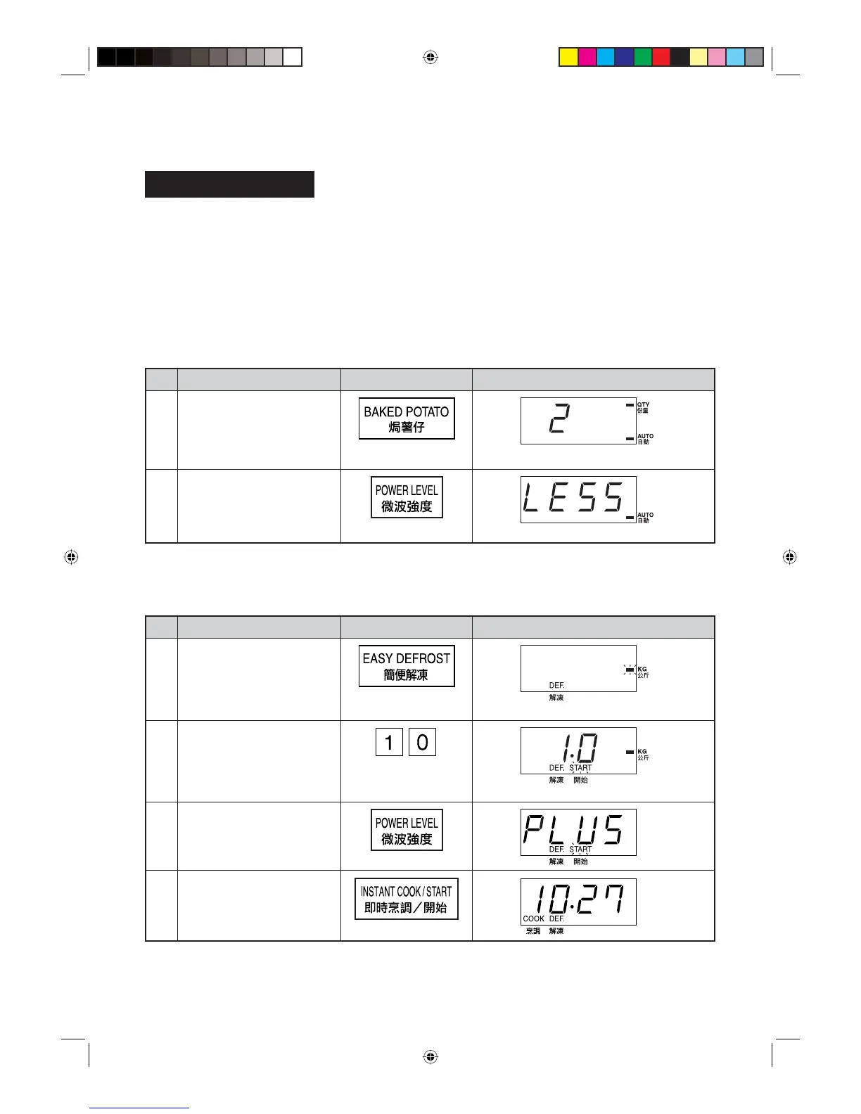* Suppose you want to defrost 1.0kg of Chicken Pieces for more time than the standard setting.