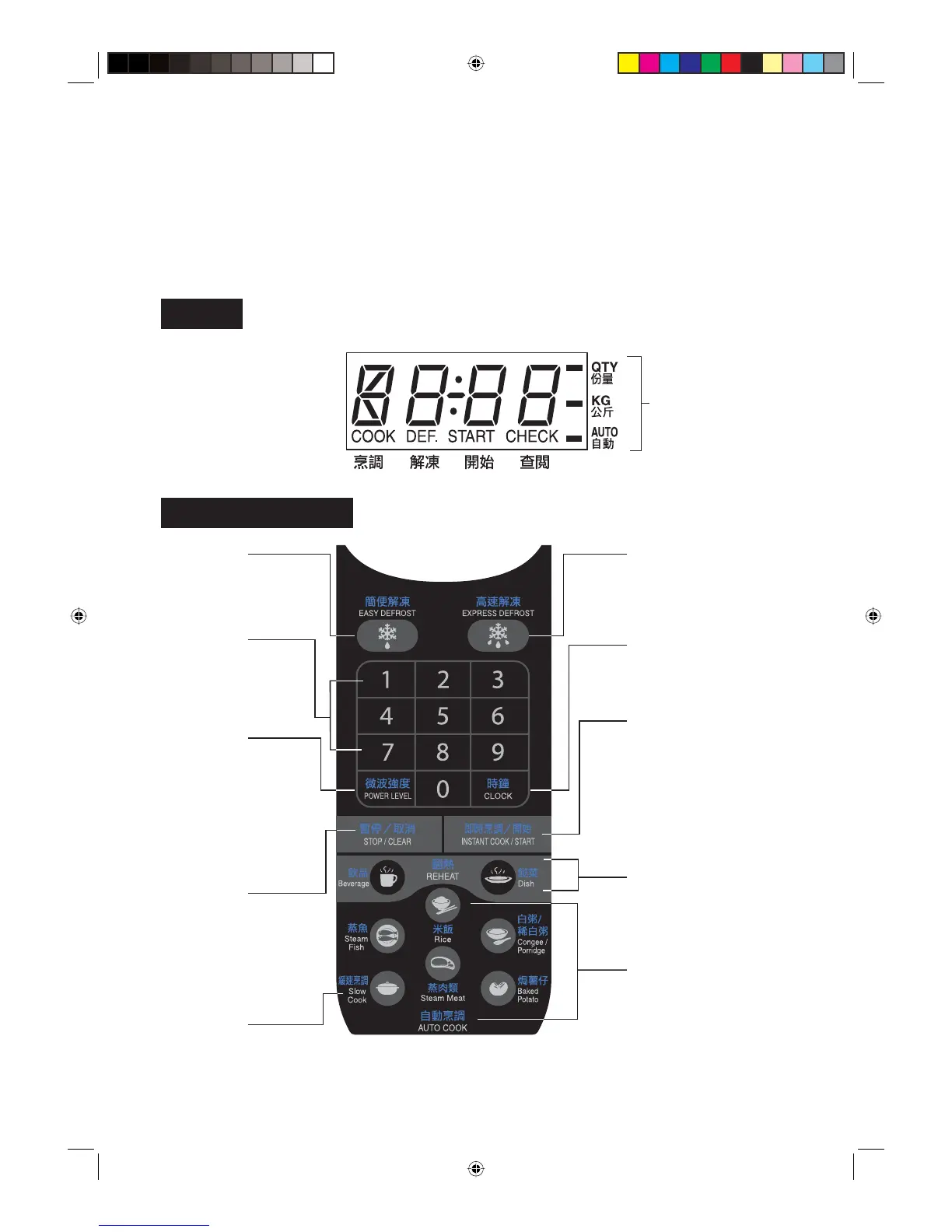 觸按控制板軟鍵以控制微波爐操作﹐當每次正確地觸按﹐微波爐會發出鳴響聲﹐以表示閣下已選擇軟鍵。