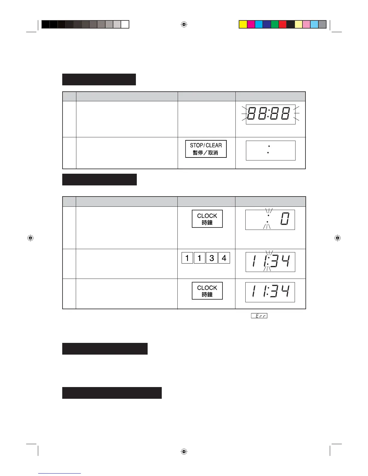 在烹調的狀態下如果想知道當天的時間,請按時鐘軟鍵。當手按著時鐘軟鍵時,時間會被顯示。