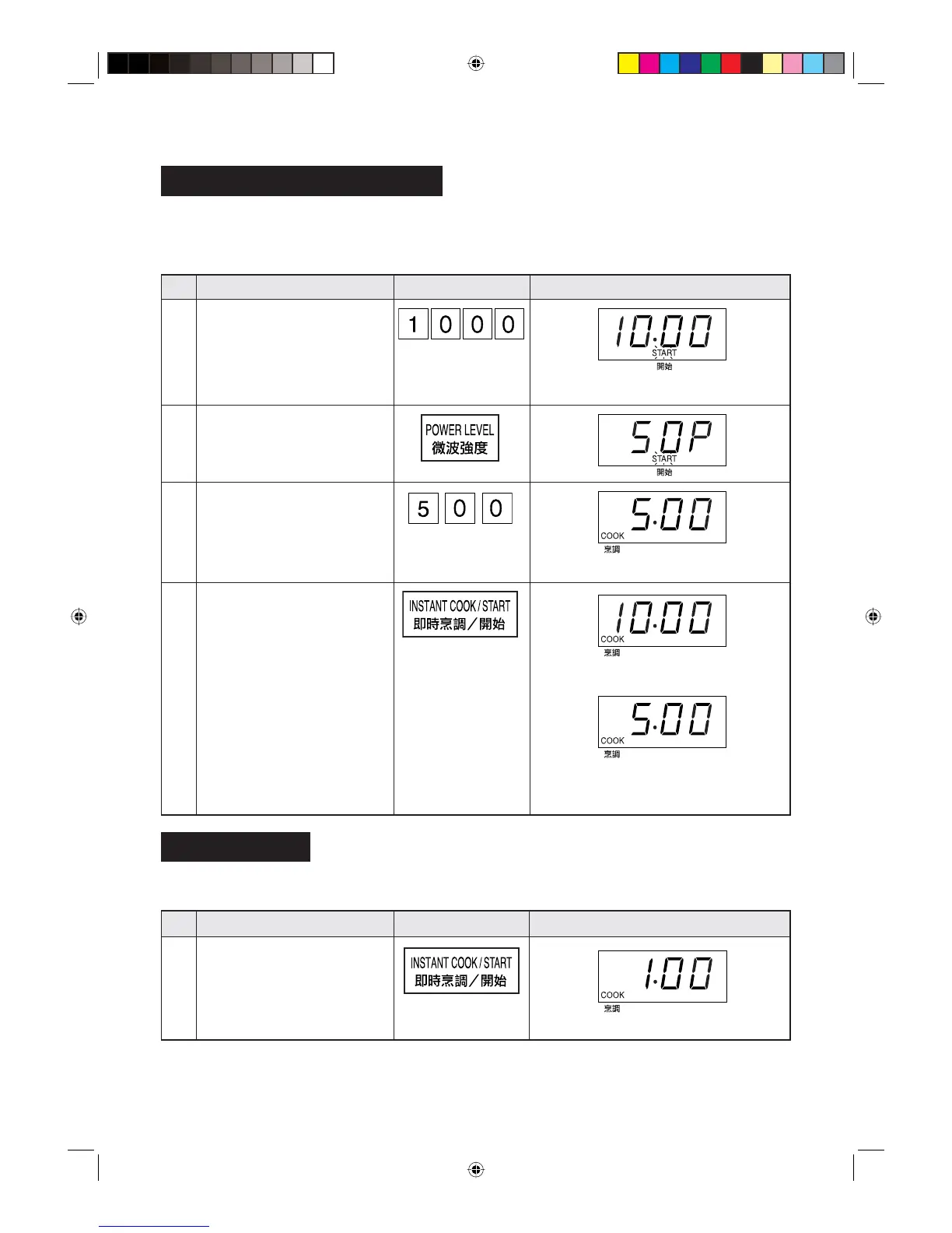 Tekan pad INSTANT COOK/START (MASAK SEGERA/MULA) sehingga masa yang dikehendaki dipaparkan.