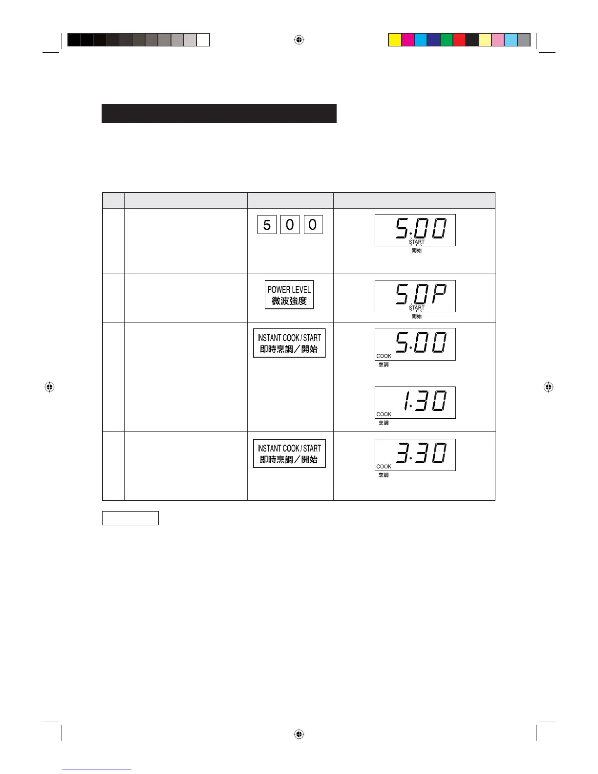 * Sebagai contoh: Anda sudah memprogram masa memasak sebanyak 5 minit pada kuasa 50% (iaitu kuasa