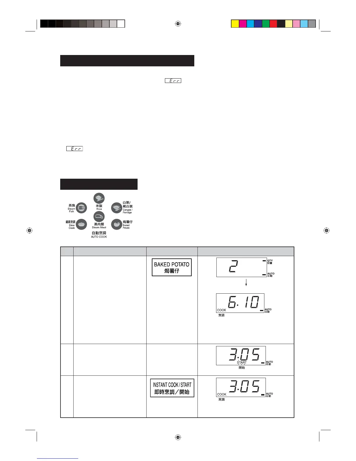 5. Untuk mengelakkan penyalahgunaan oleh kanak-kanak, setiap fungsi AUTO COOK (MASAKAN AUTOMATIK)