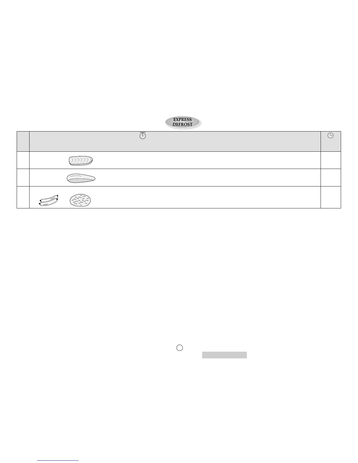 When you defrost the following menus with EXPRESS DEFROST, press the