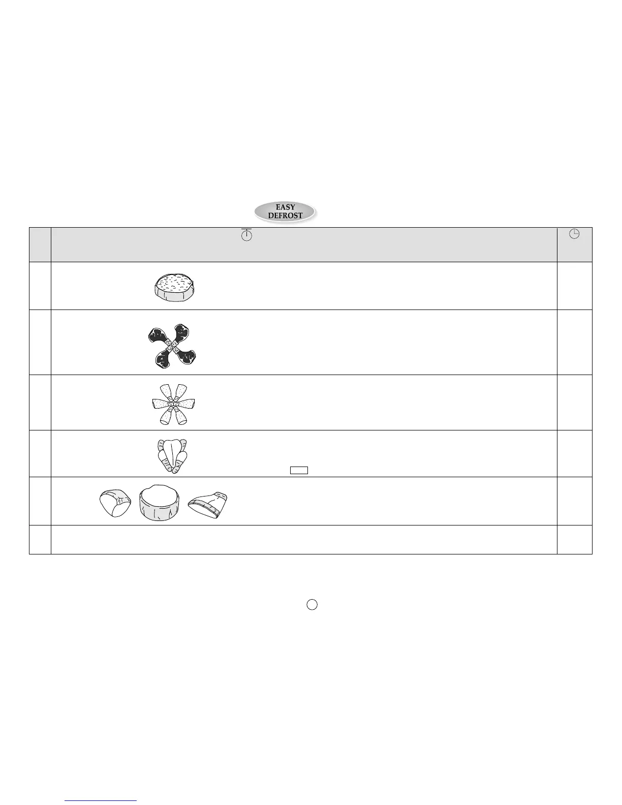 When you defrost the following menus with EASY DEFROST, press the EASY DEFROST