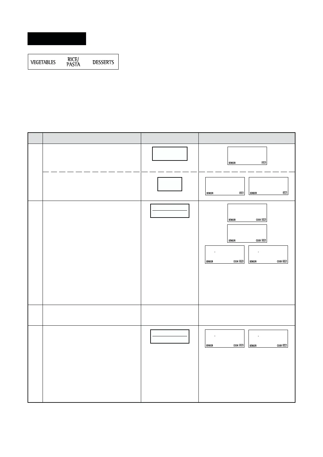 categories. To select a menu, press the desired SENSOR COOK pad until the menu of your choice is