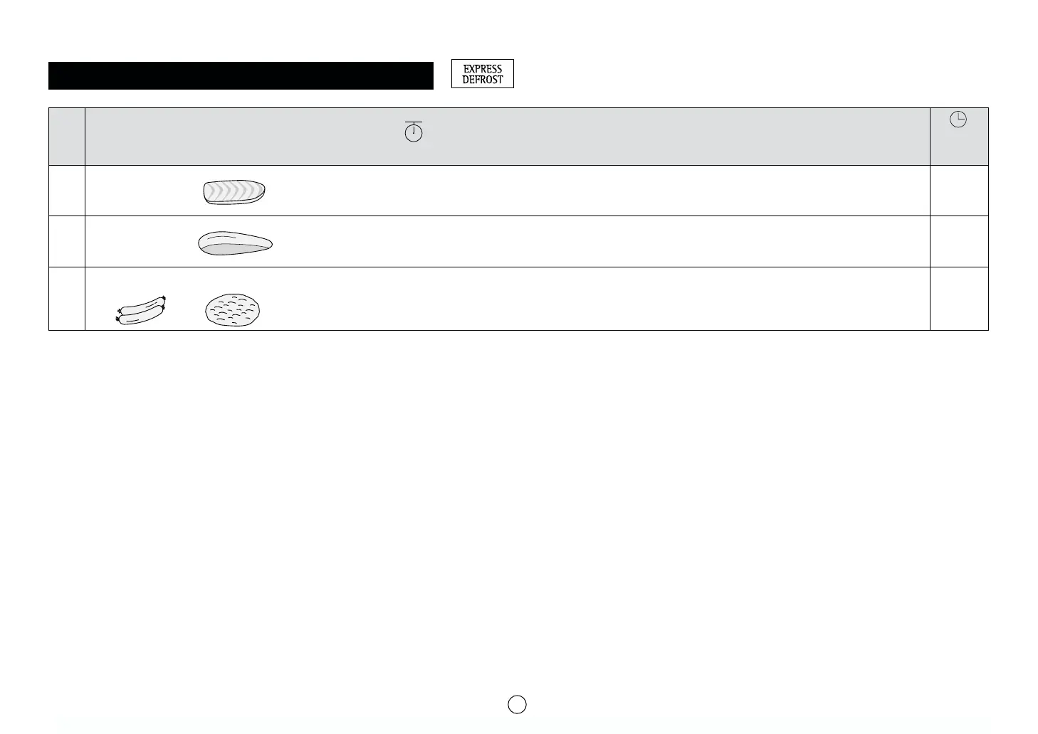EXPRESS DEFROST MENU GUIDE