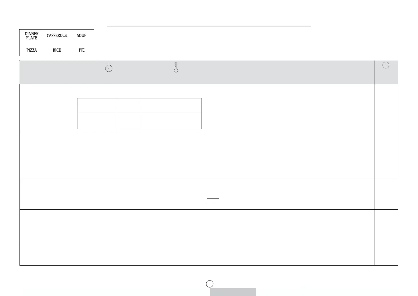 The final cooking result will vary according to the food condition (e.g. initial temperature, shape, quality). Check the food after cooking and if necessary